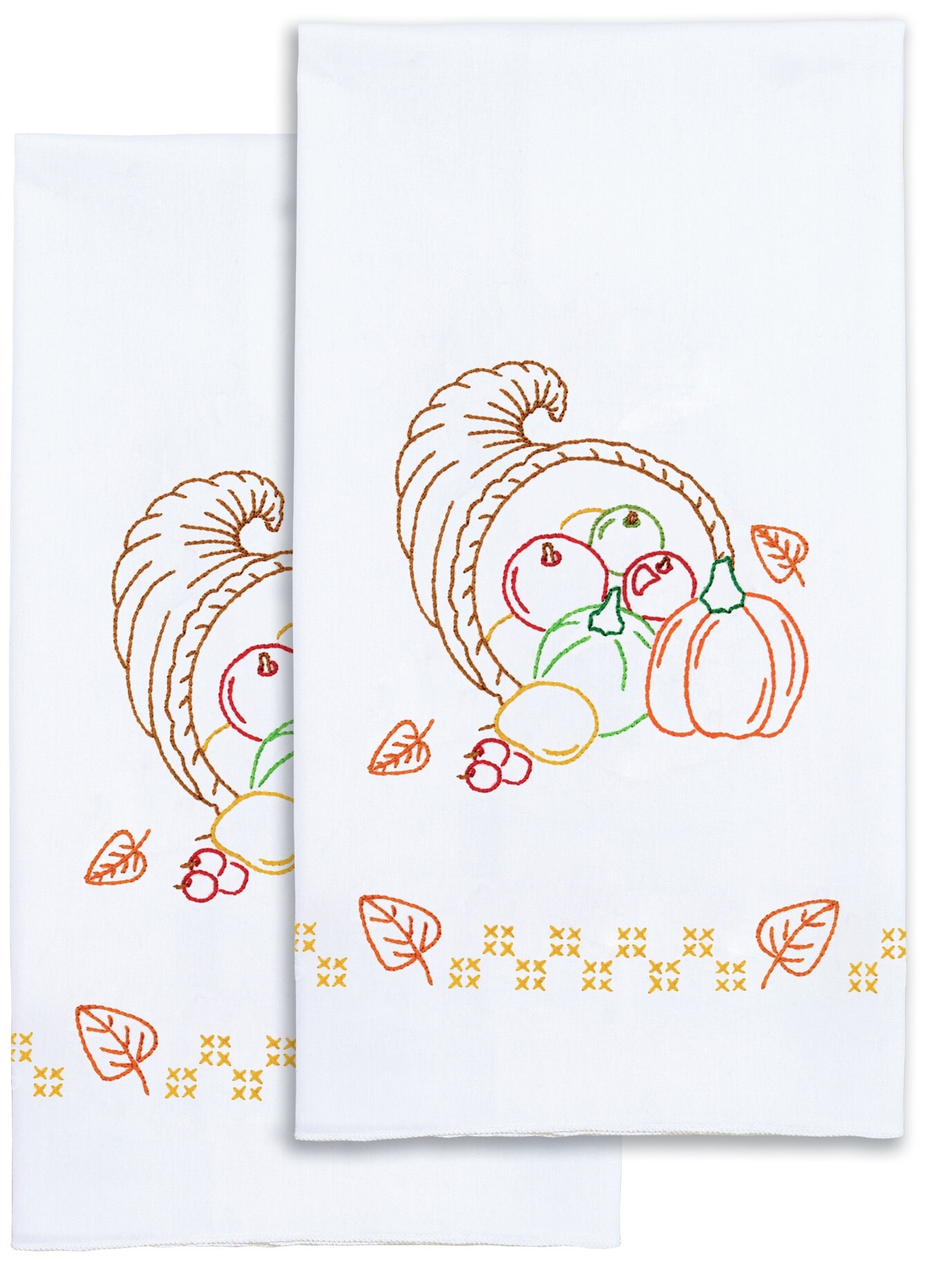 Jack Dempsey Stamped Decorative Hand Towel Pair 17"X28"-Cornucopia