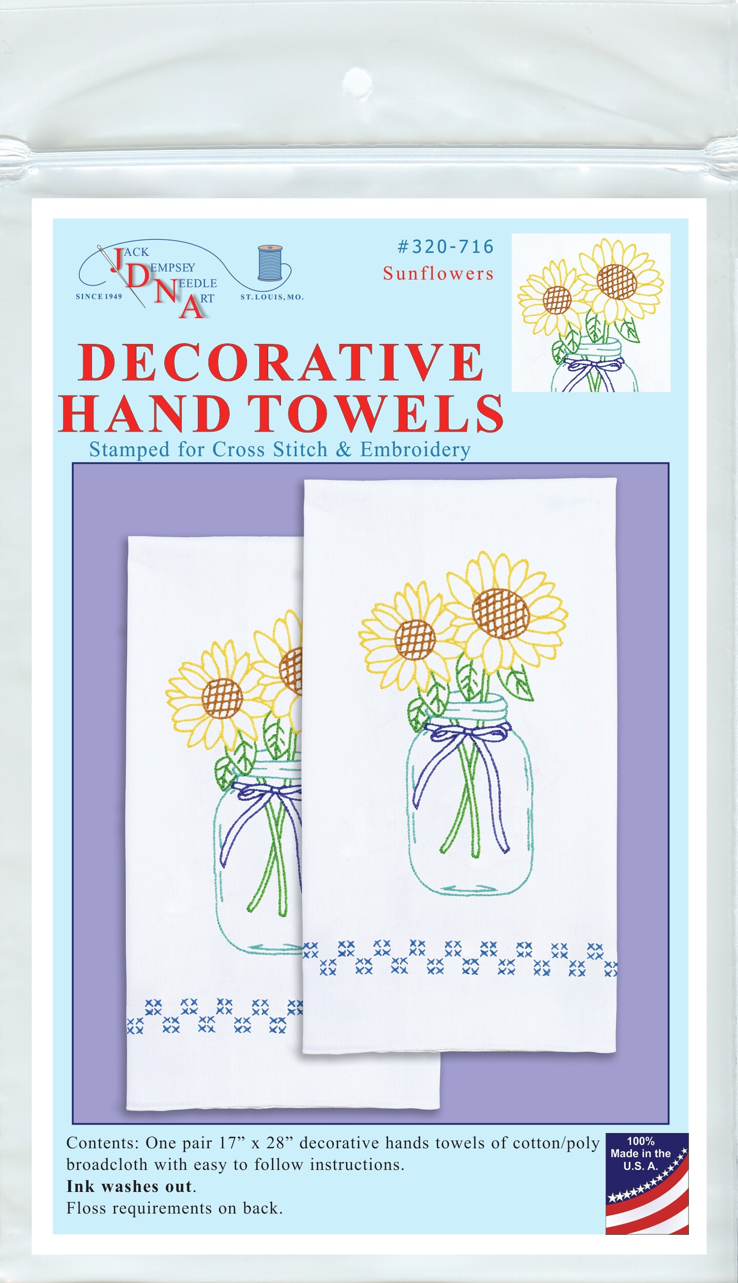 Jack Dempsey Stamped Decorative Hand Towel Pair 17"X28"-Sunflowers