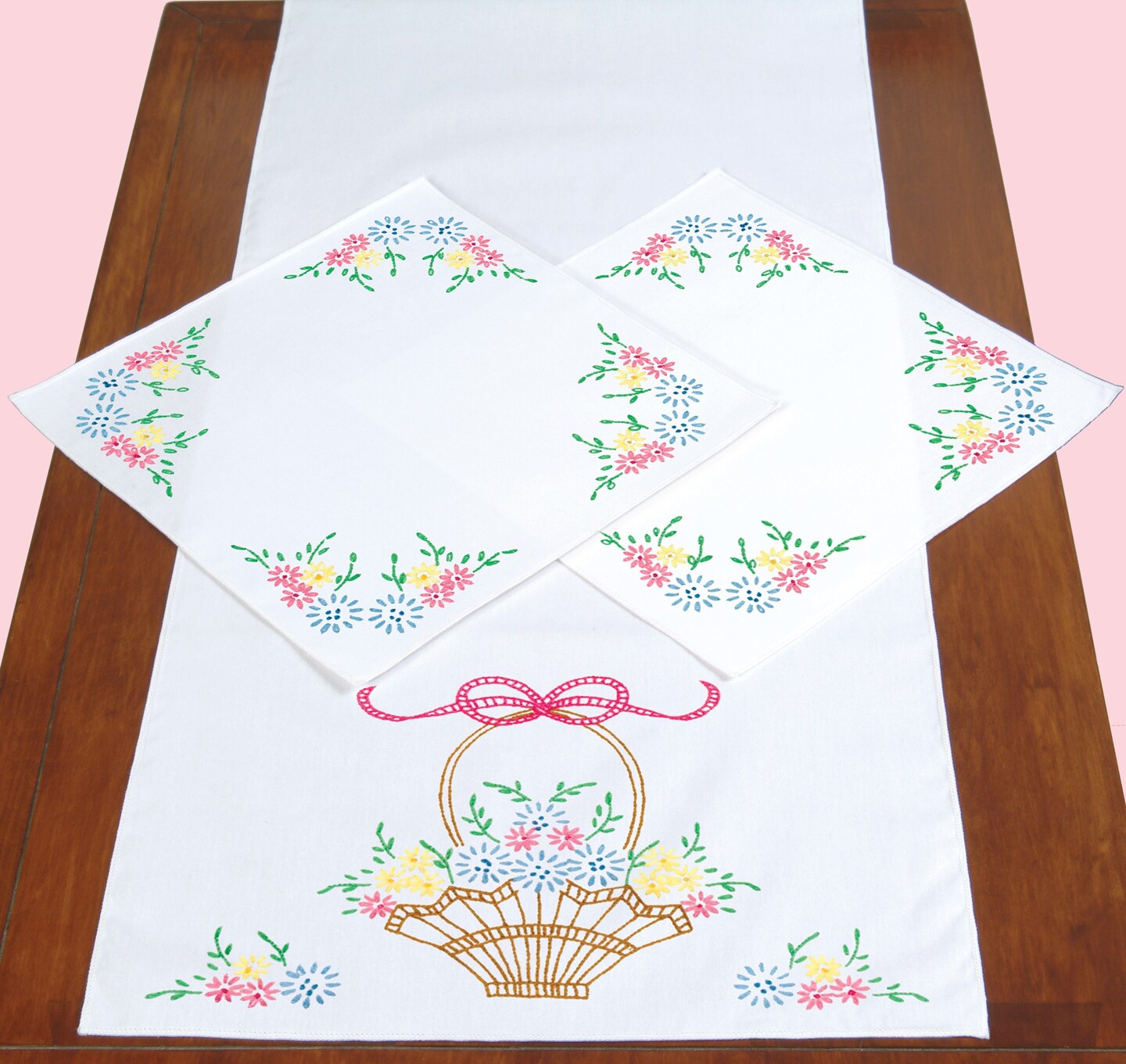 Jack Dempsey Stamped Dresser Scarf & Doilies Perle Edge-Basket Of Daisies