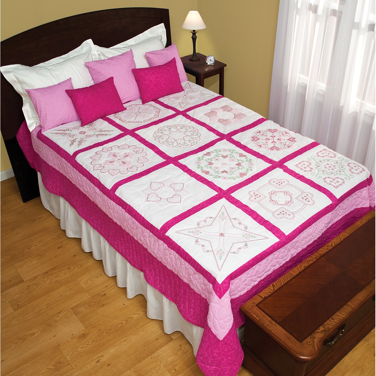 Jack Dempsey Stamped Sampler Quilt Blocks 18"X18" 12/Pkg-Hearts