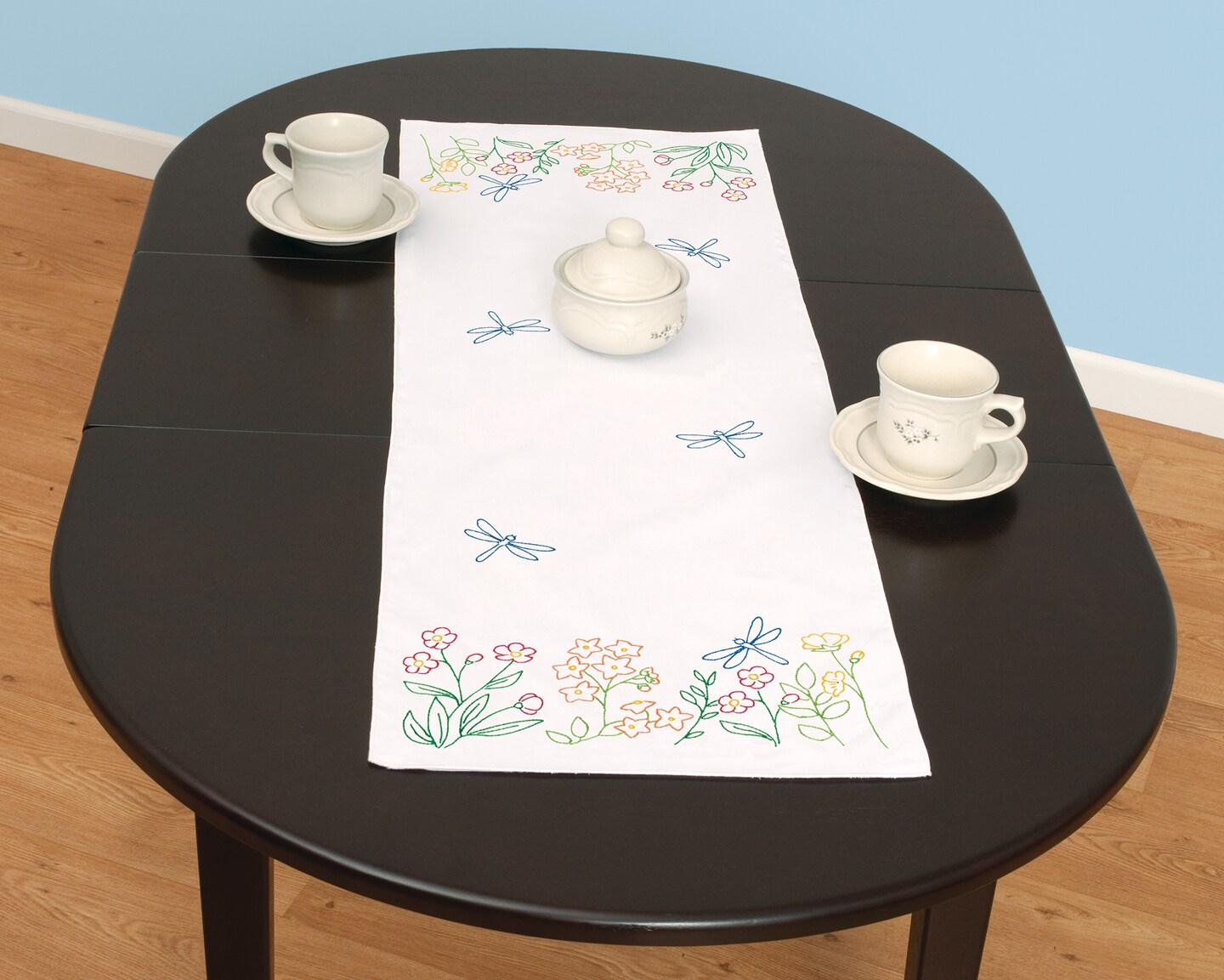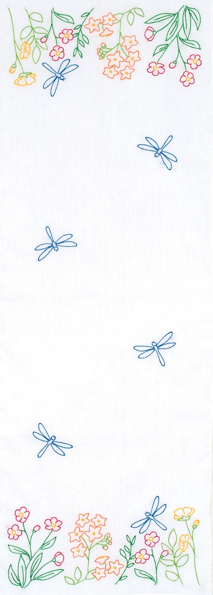 Jack Dempsey Stamped Table Runner/Scarf 15"X42"-Dragonflies
