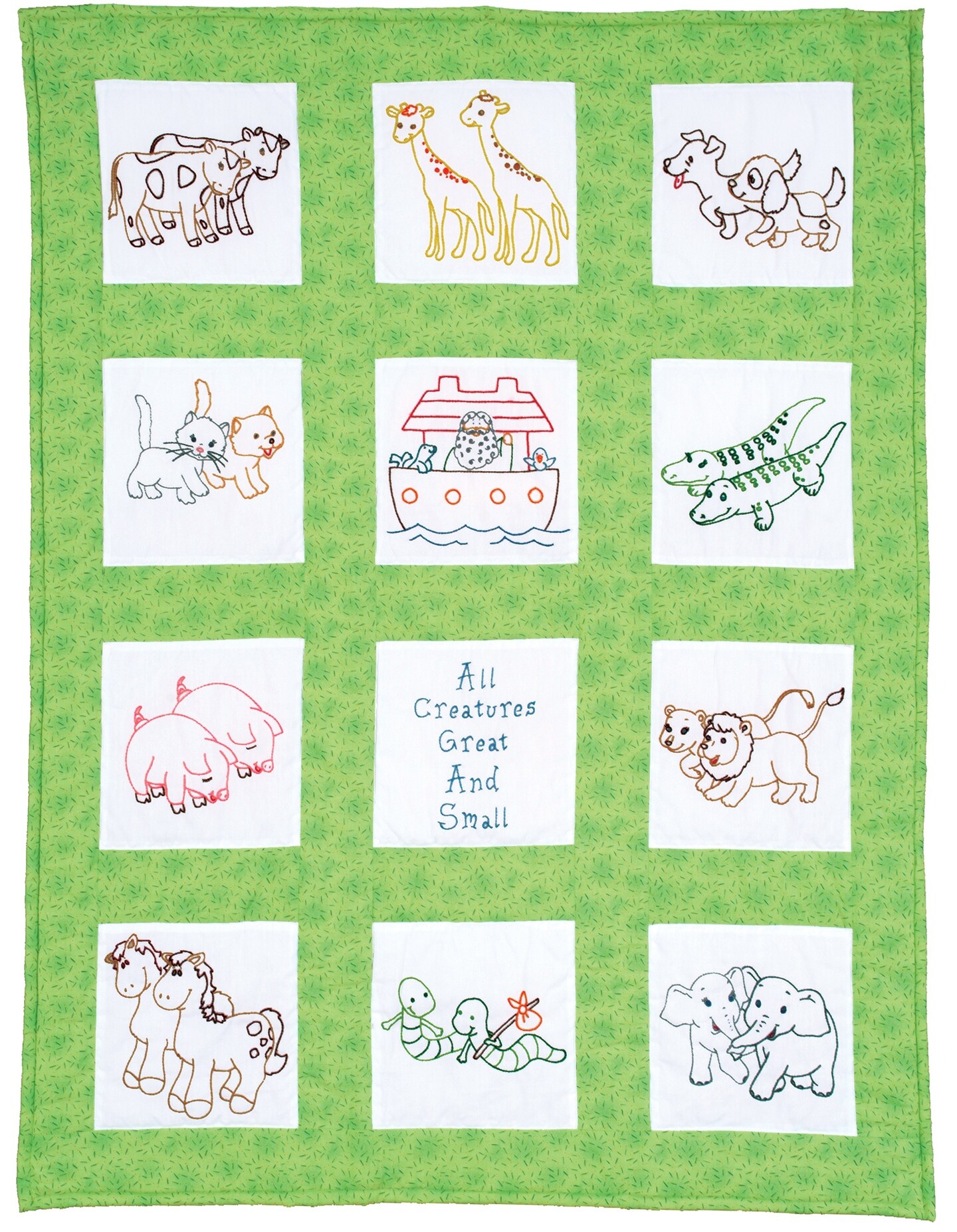 Jack Dempsey Stamped White Nursery Quilt Blocks 9"X9" 12/Pkg-Noah's Ark
