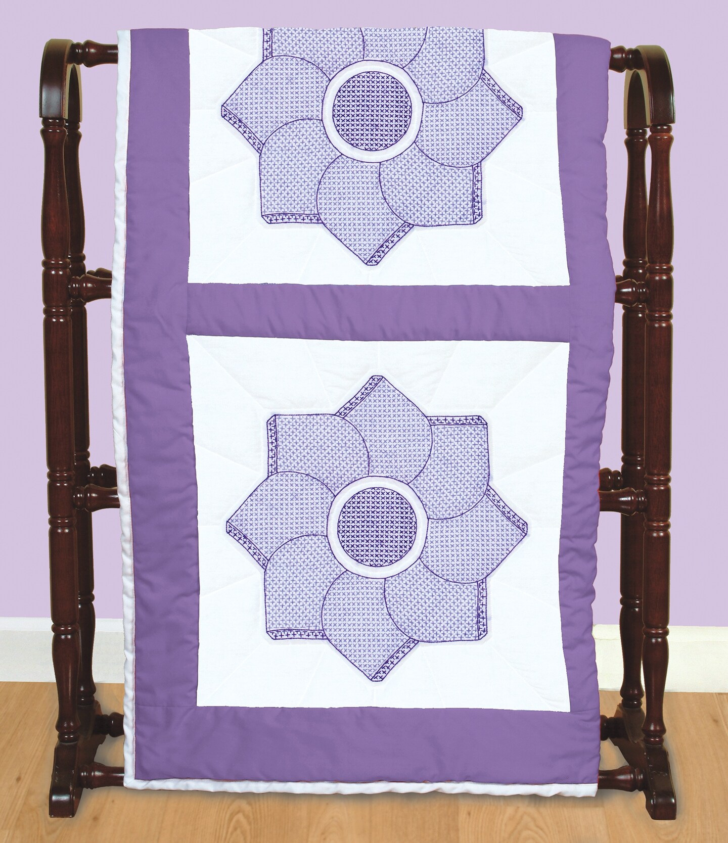 Jack Dempsey Stamped White Quilt Blocks 18"X18" 6/Pkg-Heart Flower