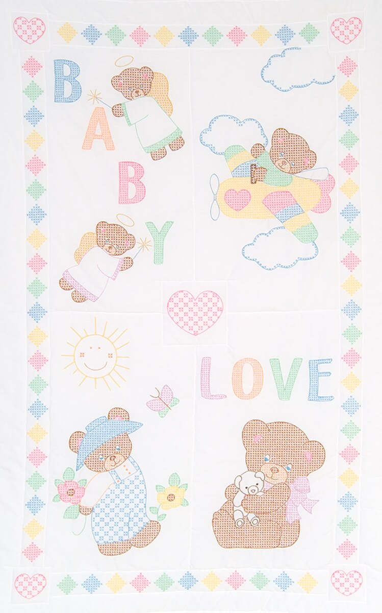 Jack Dempsey Stamped White Quilt Crib Top 40"X60"-Baby Love Bears