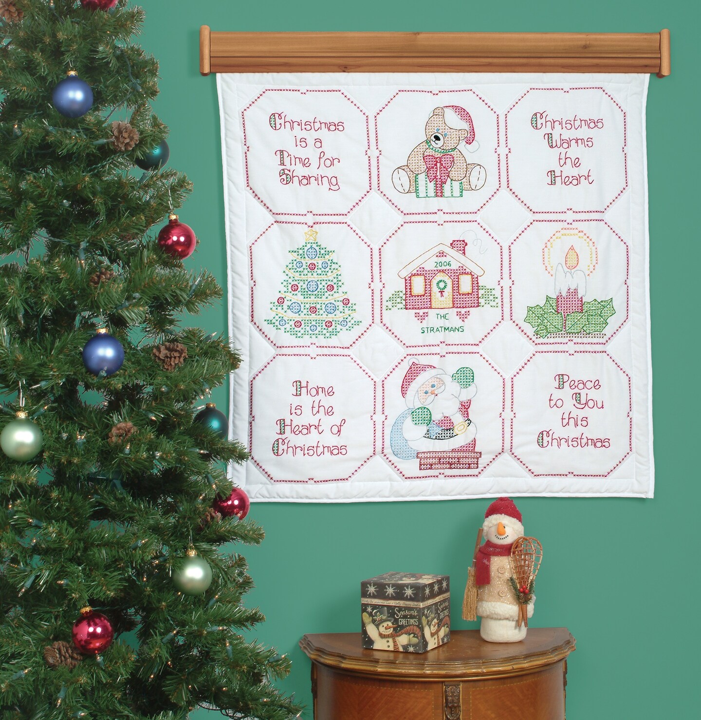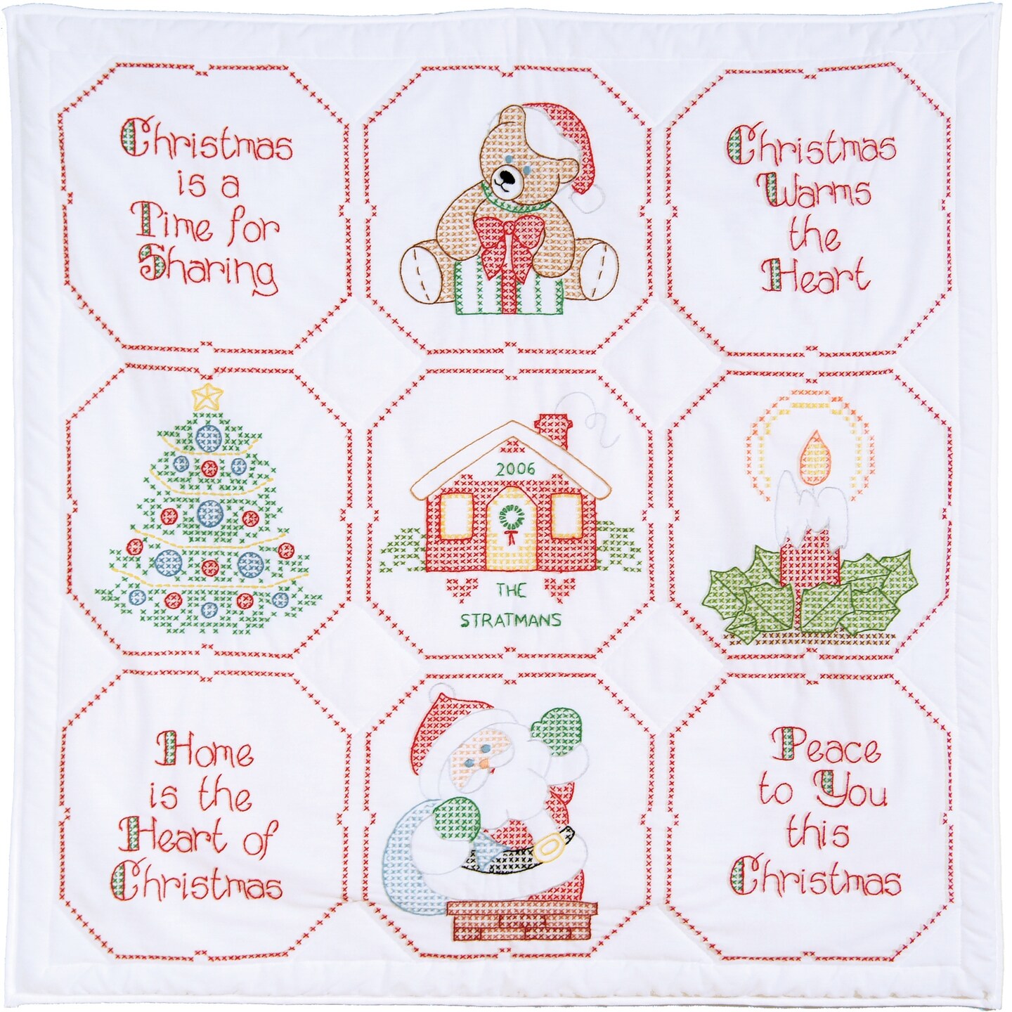 Jack Dempsey Stamped White Wall Or Lap Quilt 36"X36"-Christmas Blessing