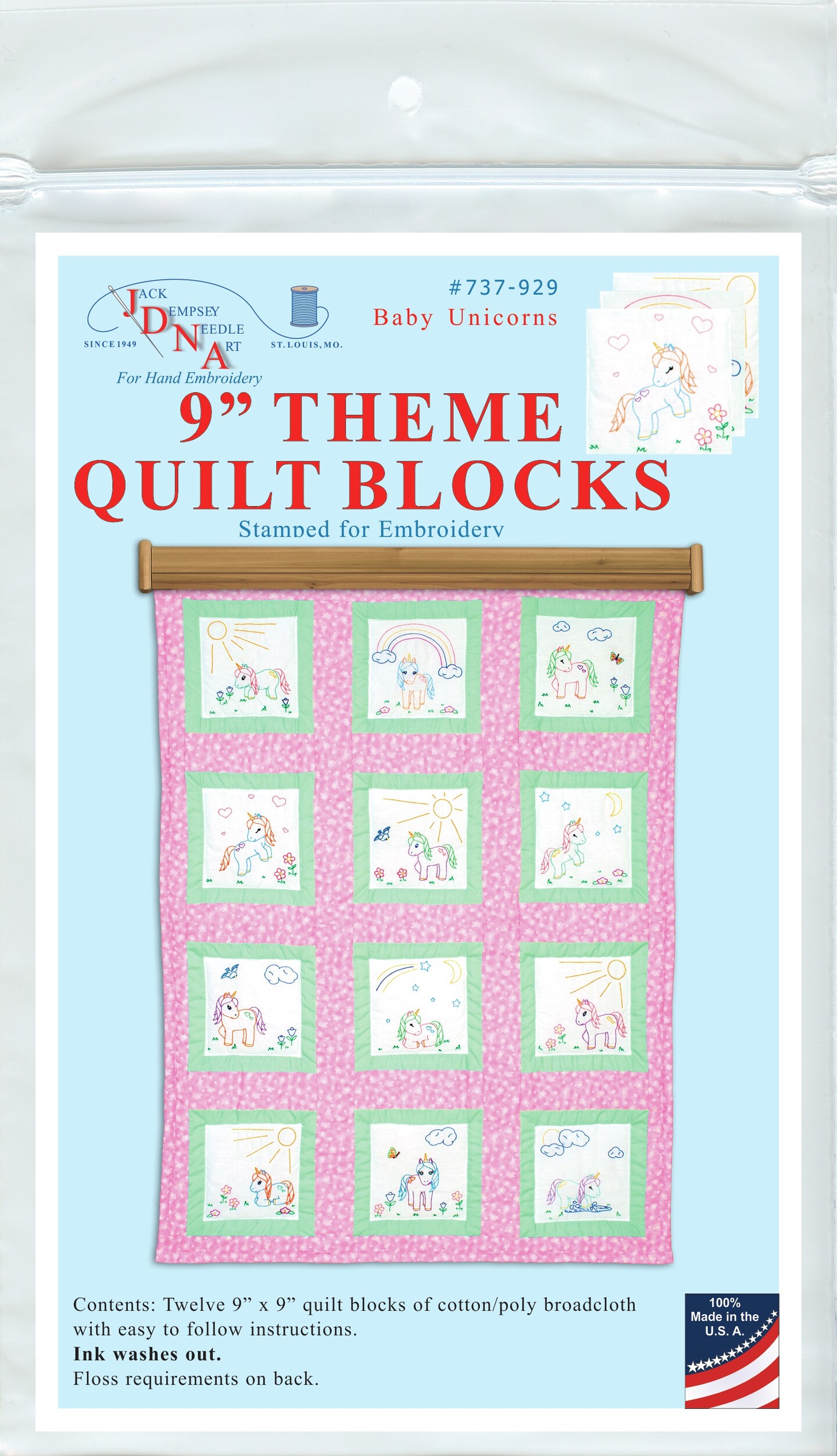 Jack Dempsey Themed Stamped White Quilt Blocks 9"X9" 12/Pkg-Baby Unicorn