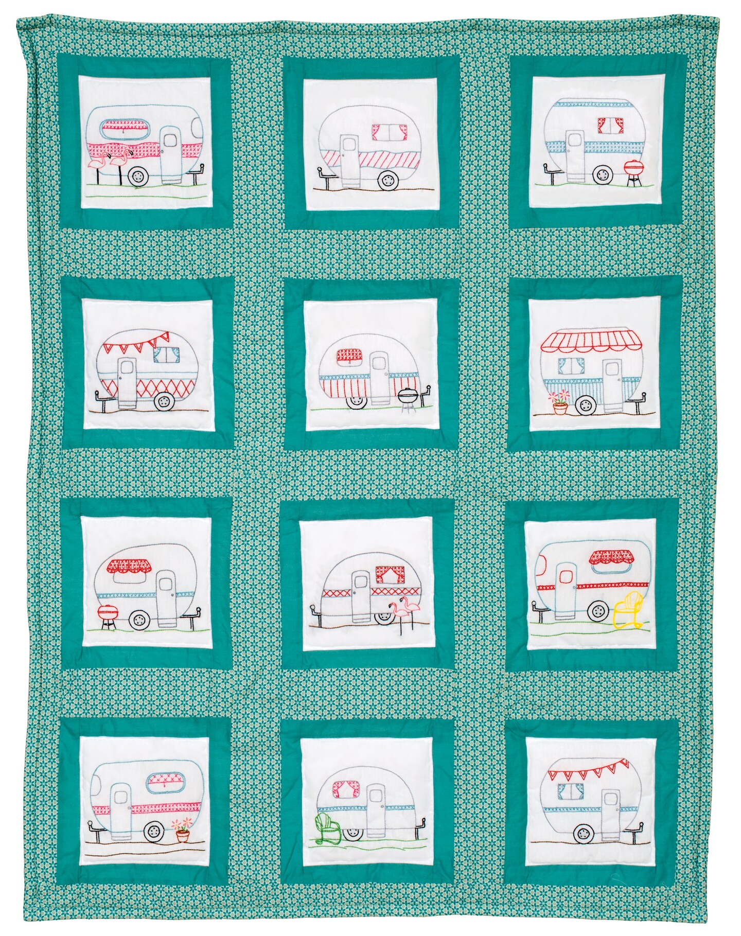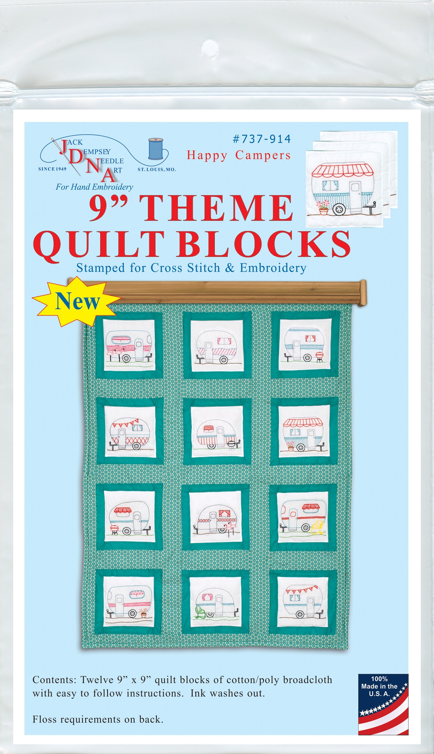 Jack Dempsey Themed Stamped White Quilt Blocks 9"X9" 12/Pkg-Campers