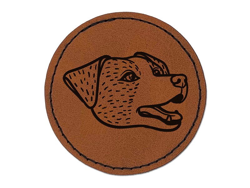 Jack Russell Terrier Dog Head Round Iron-On Engraved Faux Leather Patch Applique - 2.5"