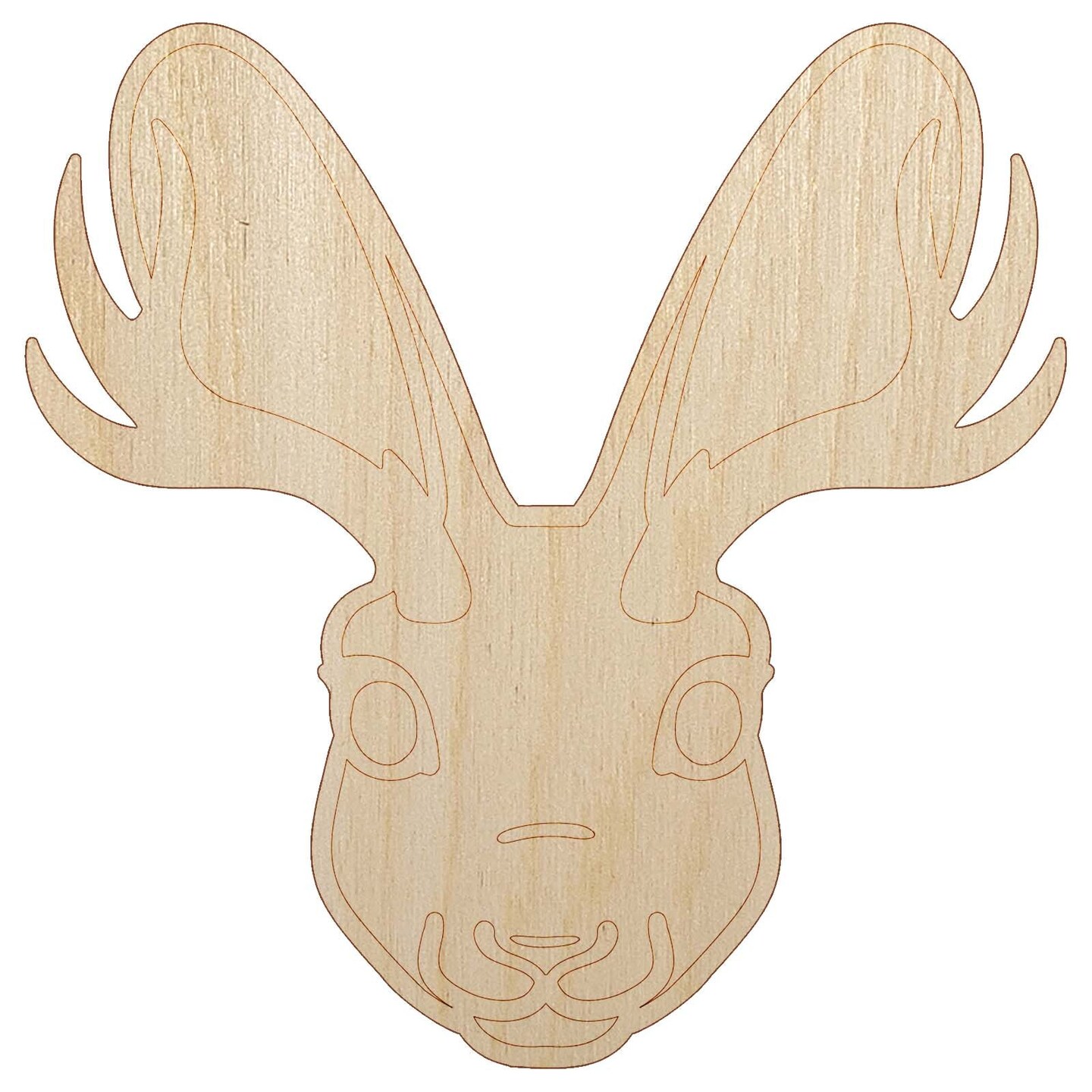 Jackalope Head Mythical Animal Jackrabbit Antelope Unfinished Wood Shape Piece Cutout for DIY Craft Projects