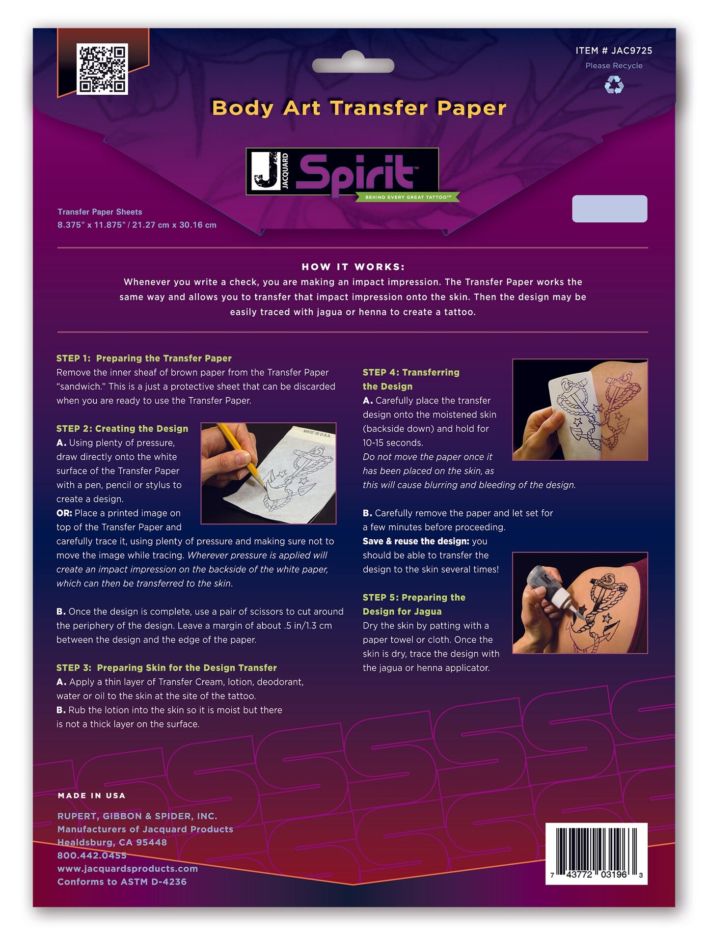 Jacquard Body Art Transfer Paper
