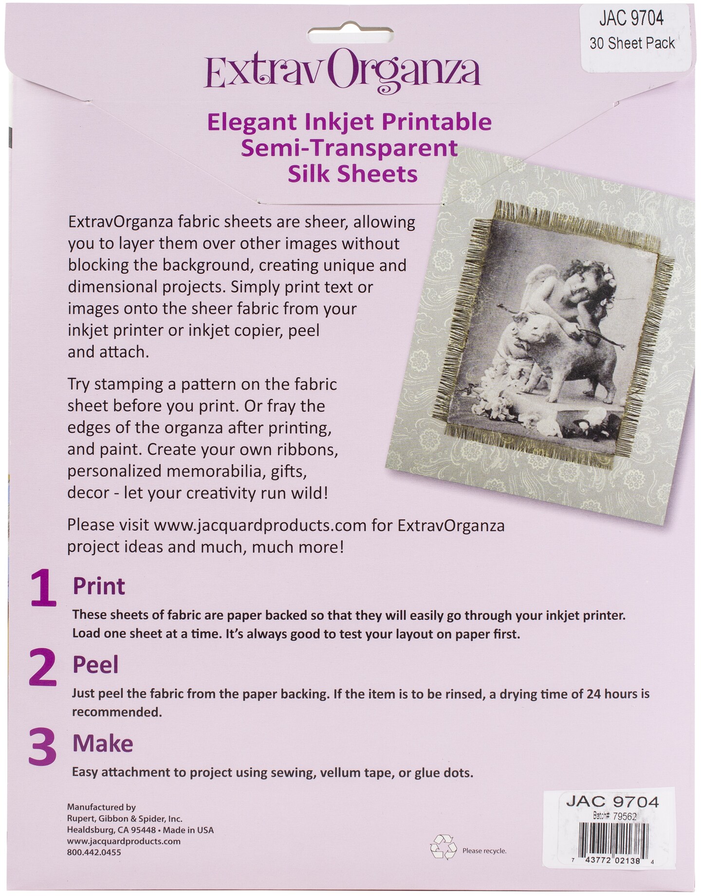 Jacquard ExtraOrganza Ink Jet Fabric Sheets 8.5"X11" 30/Pkg-Silk
