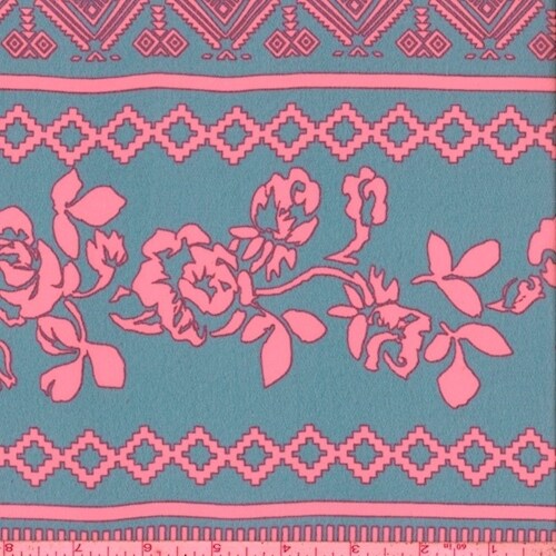 Jade Blue/Neon Pink Floral Stripe Georgette Fabric By the Yard