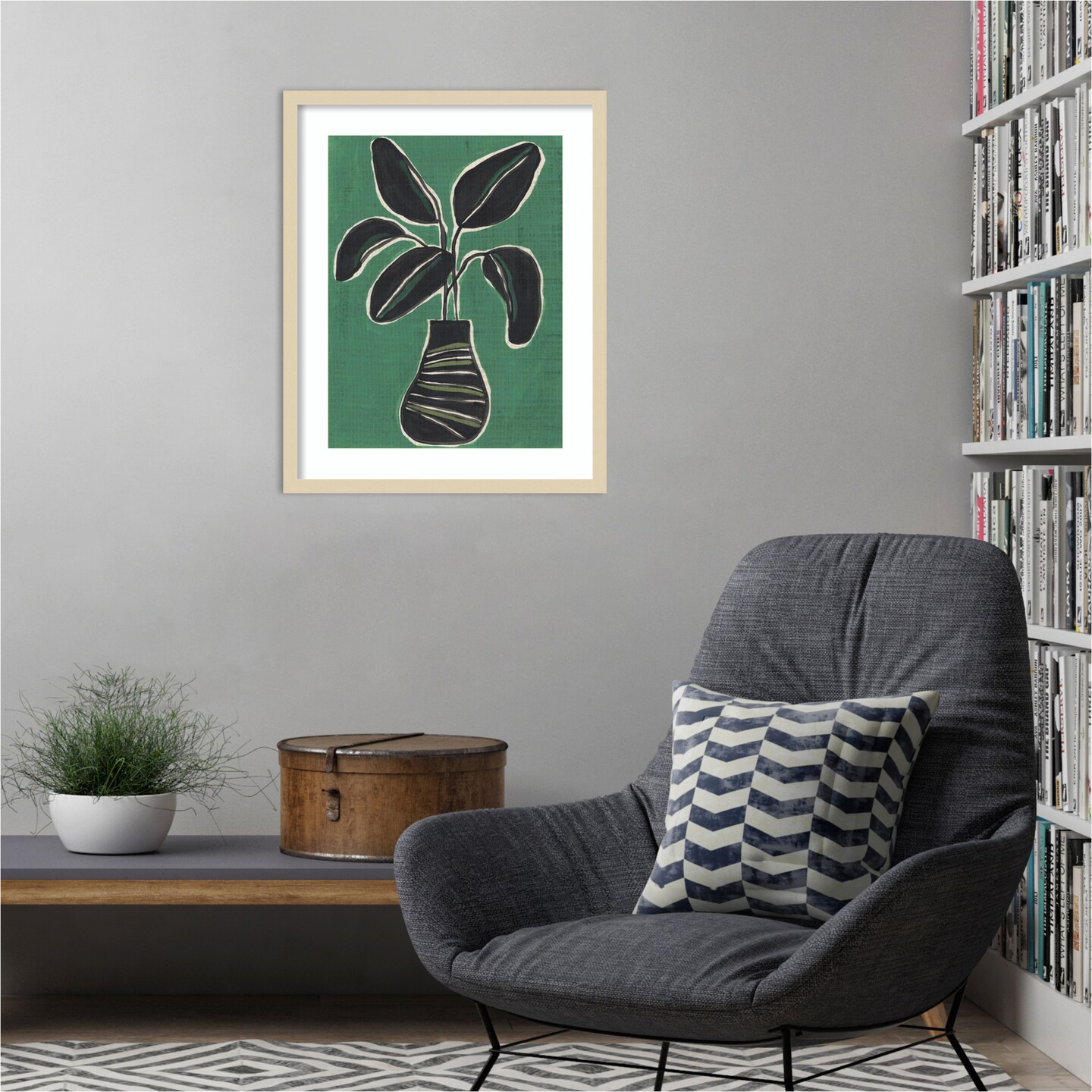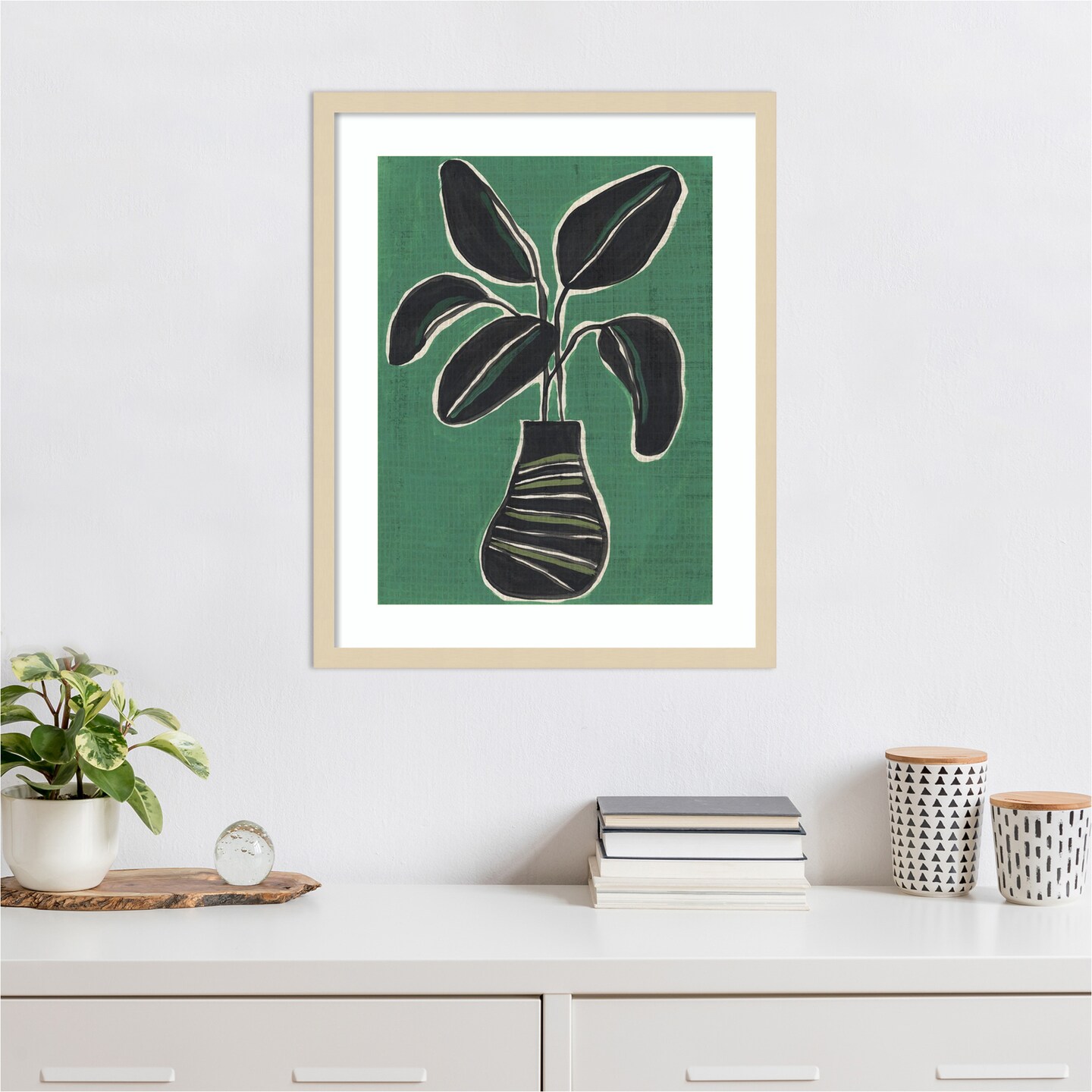 Jade Potted Palm I by June Erica Vess Wood Framed Wall Art Print