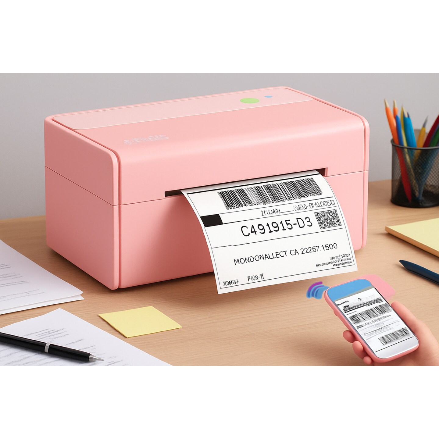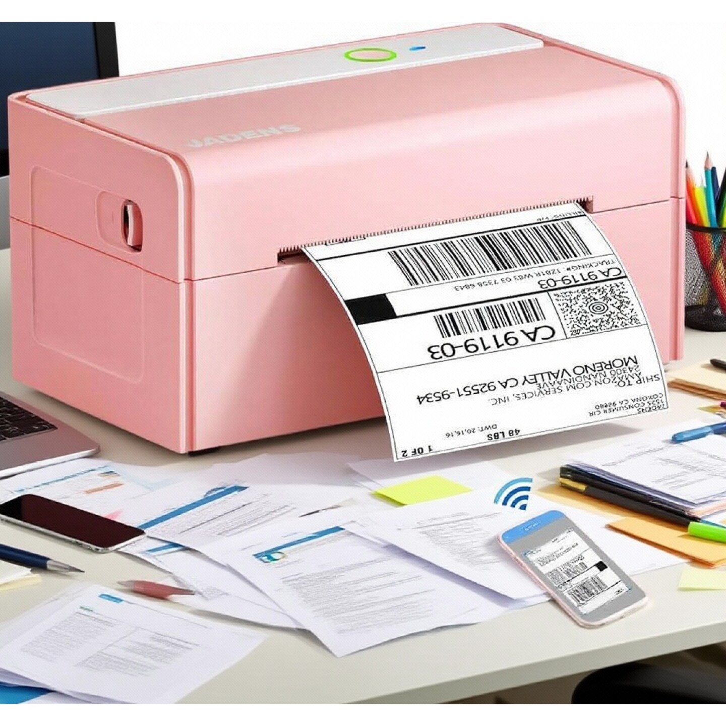 JADENS® Bluetooth Pink Thermal Label Printer 4x6 Wireless Shipping Label Printer
