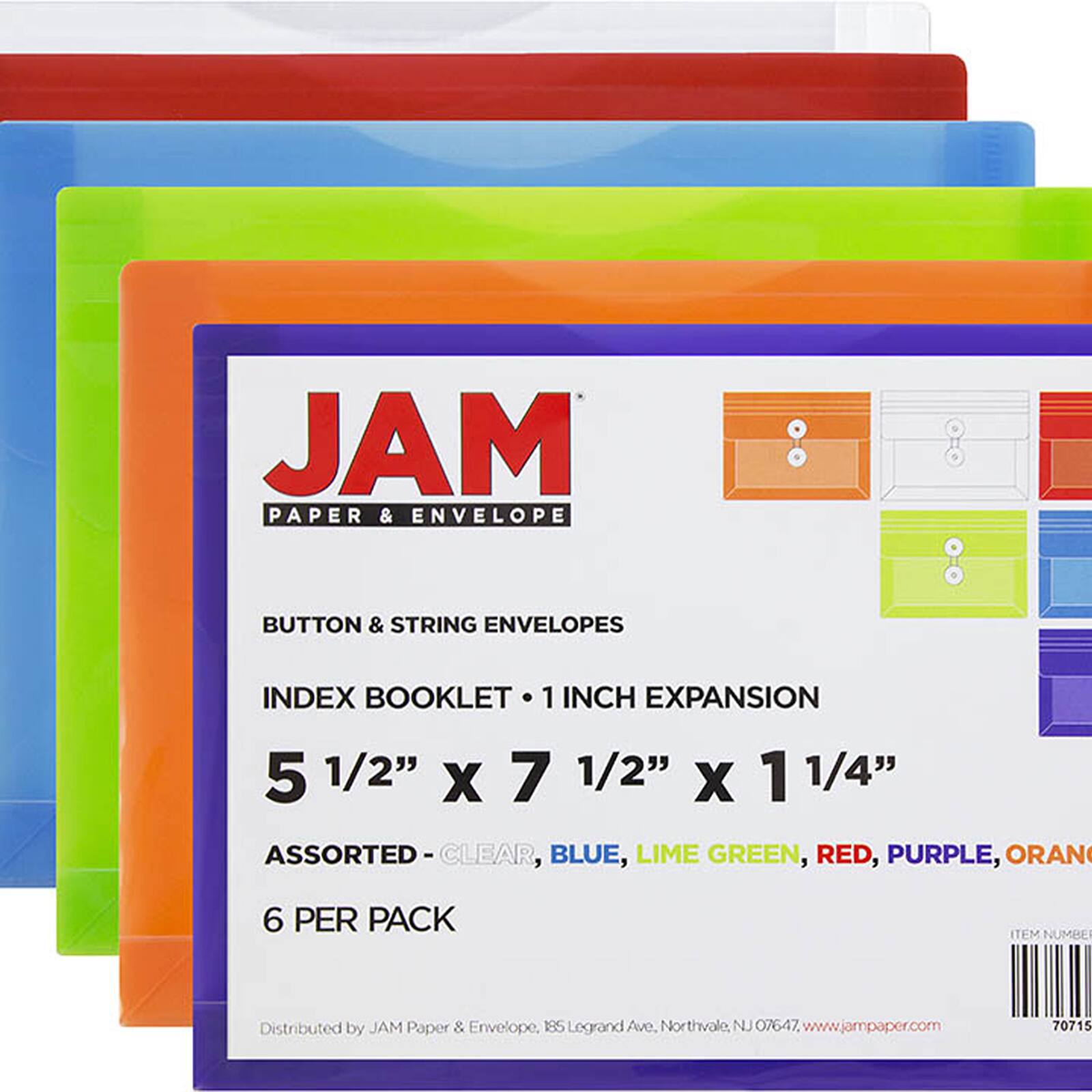 JAM Paper 5.25" x 7.5" Mixed Plastic Button String Booklet Envelopes, 18ct.