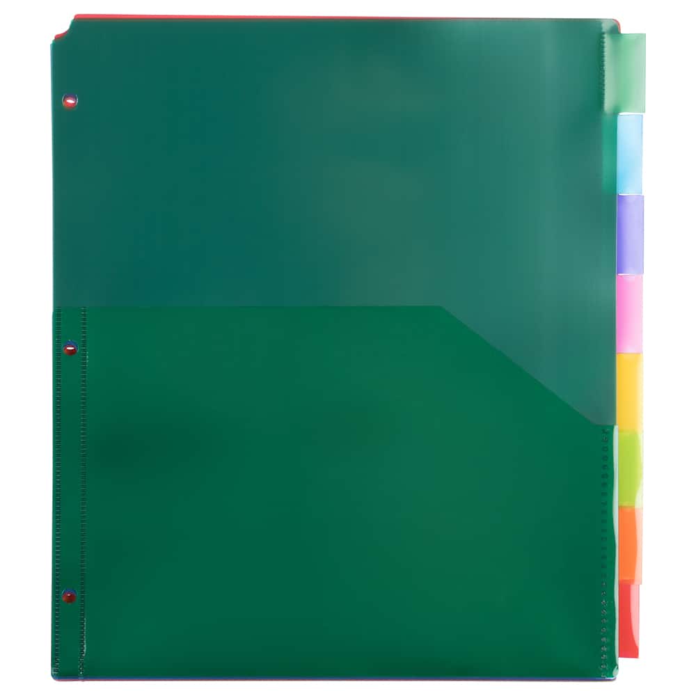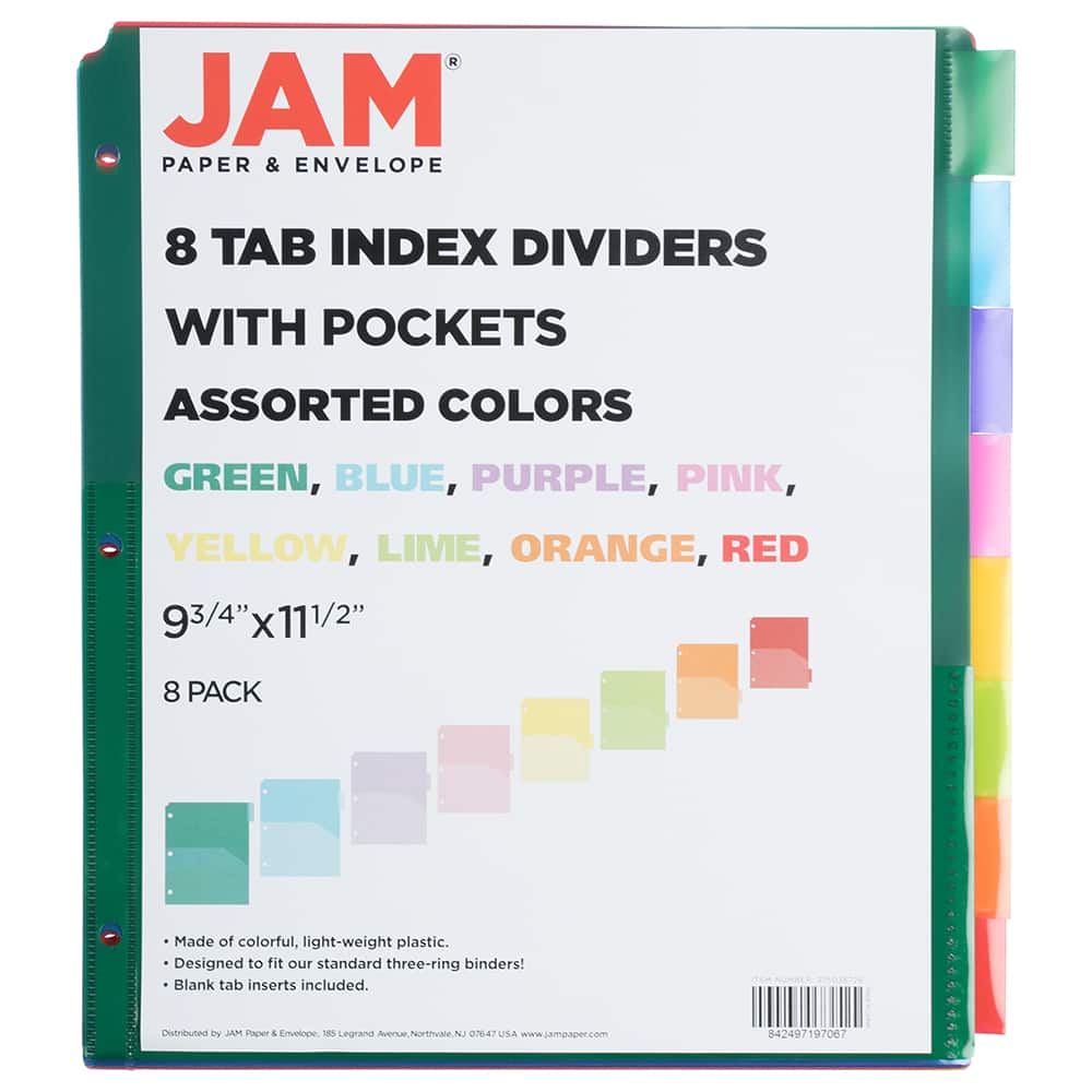 JAM Paper 9.75" x 11.5" 8-Tab Plastic Index Tab Dividers with Double Pockets