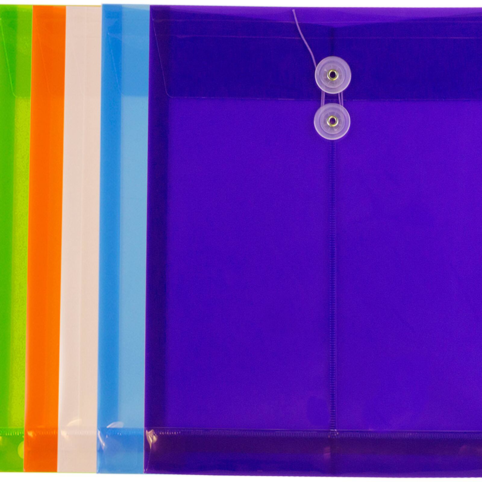 JAM Paper 9.75" x 13" Assorted Plastic Button String Open End Envelopes, 18ct.