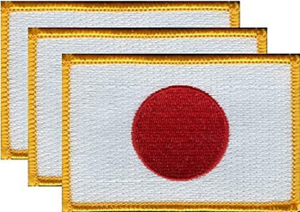 Japan Flag Patch Set - Pack of 3 Embroidered Iron On or Sew On Emblems. 3.5" x 2.25"