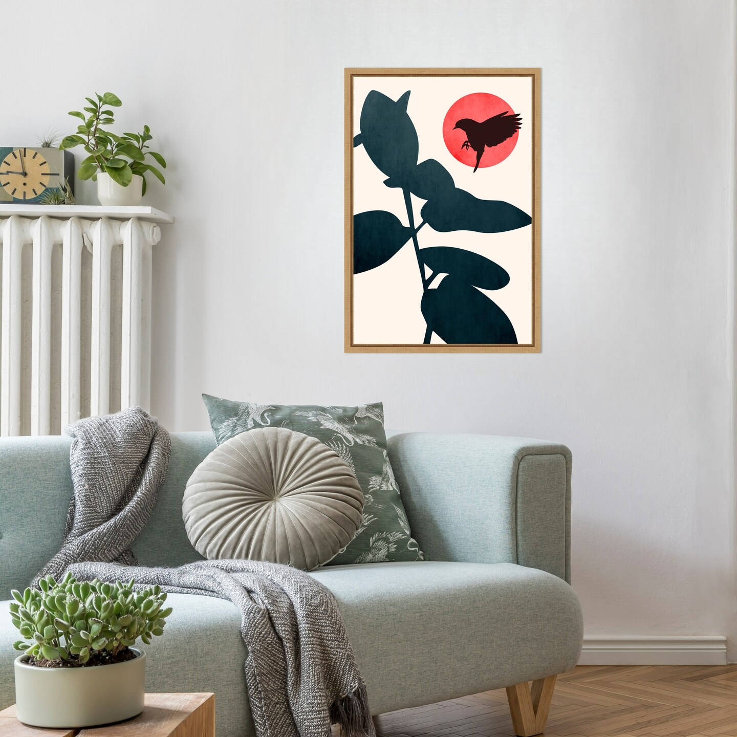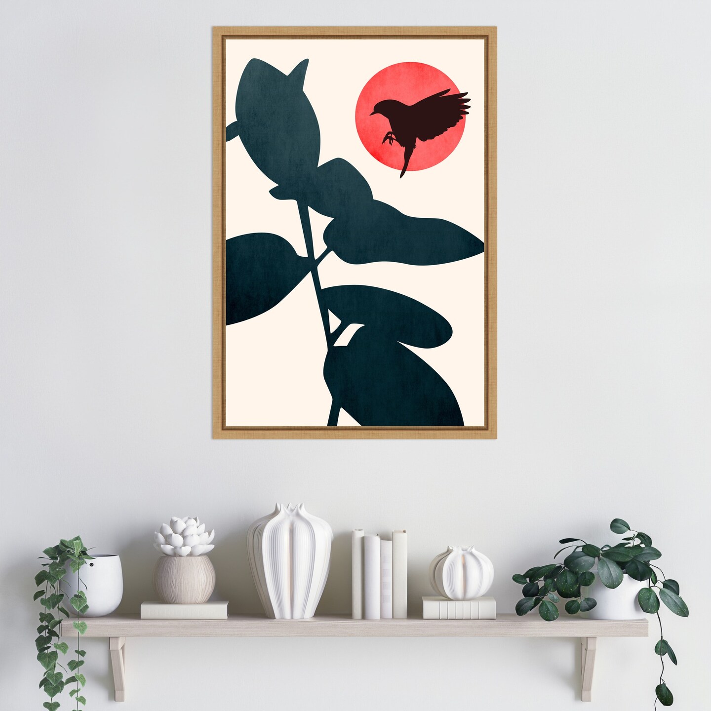 Japanese Bird by Eins Kubistika Framed Canvas Wall Art