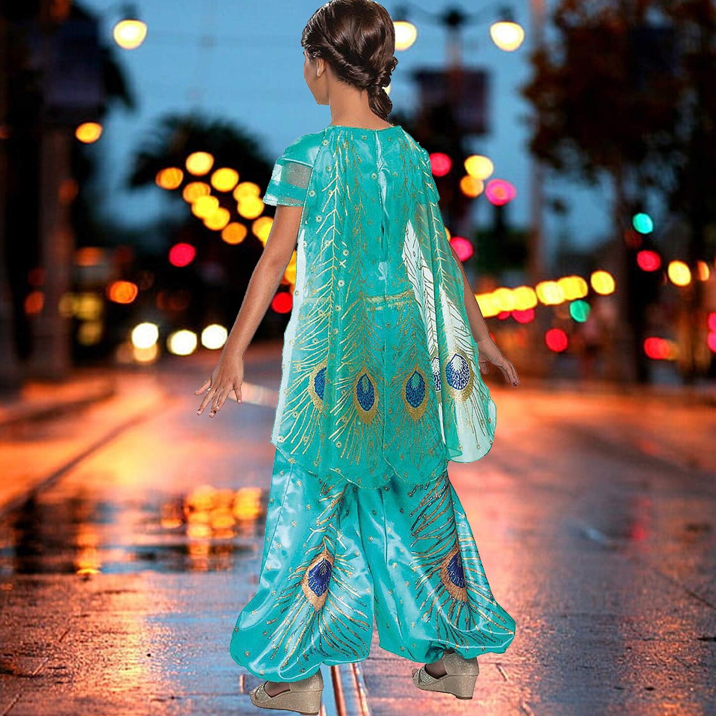 Jasmine Teal Deluxe Girls Costume with Cape Iconic Disney Princess
