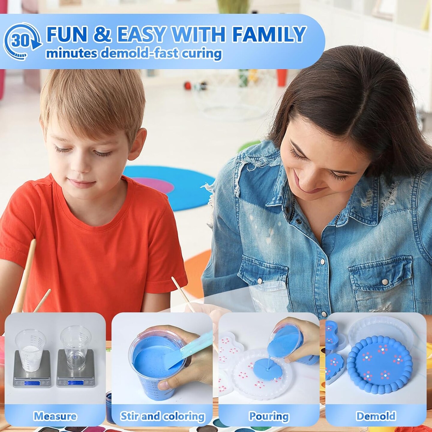 JDiction ResinCrete Kit, Complete Kit Easy for Beginners, 20-30Minutes Demold, Include Water-Based Eco-Friendly Casting Powder, Mold & Pigment, Easy Mix for Beginners DIY Home Decor