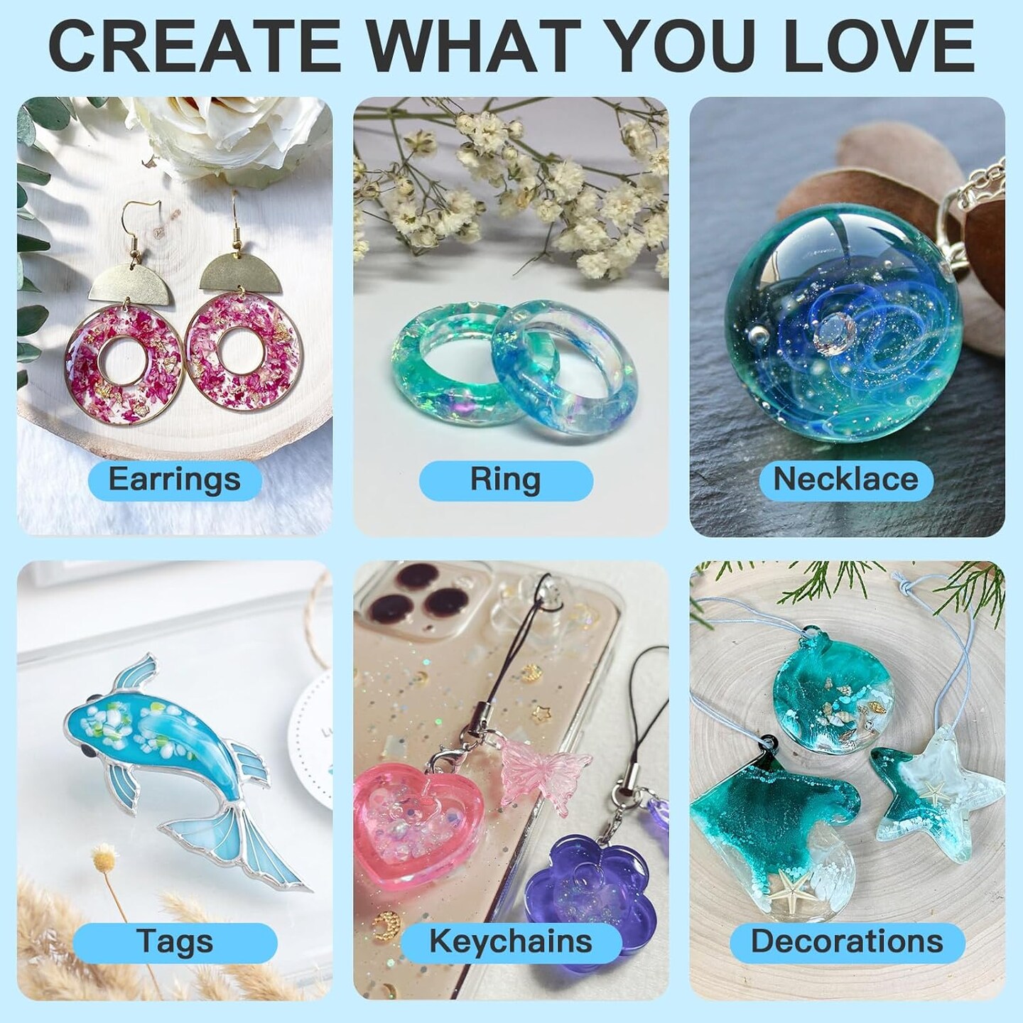 JDiction UV Resin, 300g High Gloss UV Resin Clear Solar Cure Sunlight Activated Glue Hard UV Resin Kit for Jewelry Making, Casting and Coating, DIY Crafts, Resin Art Supplies