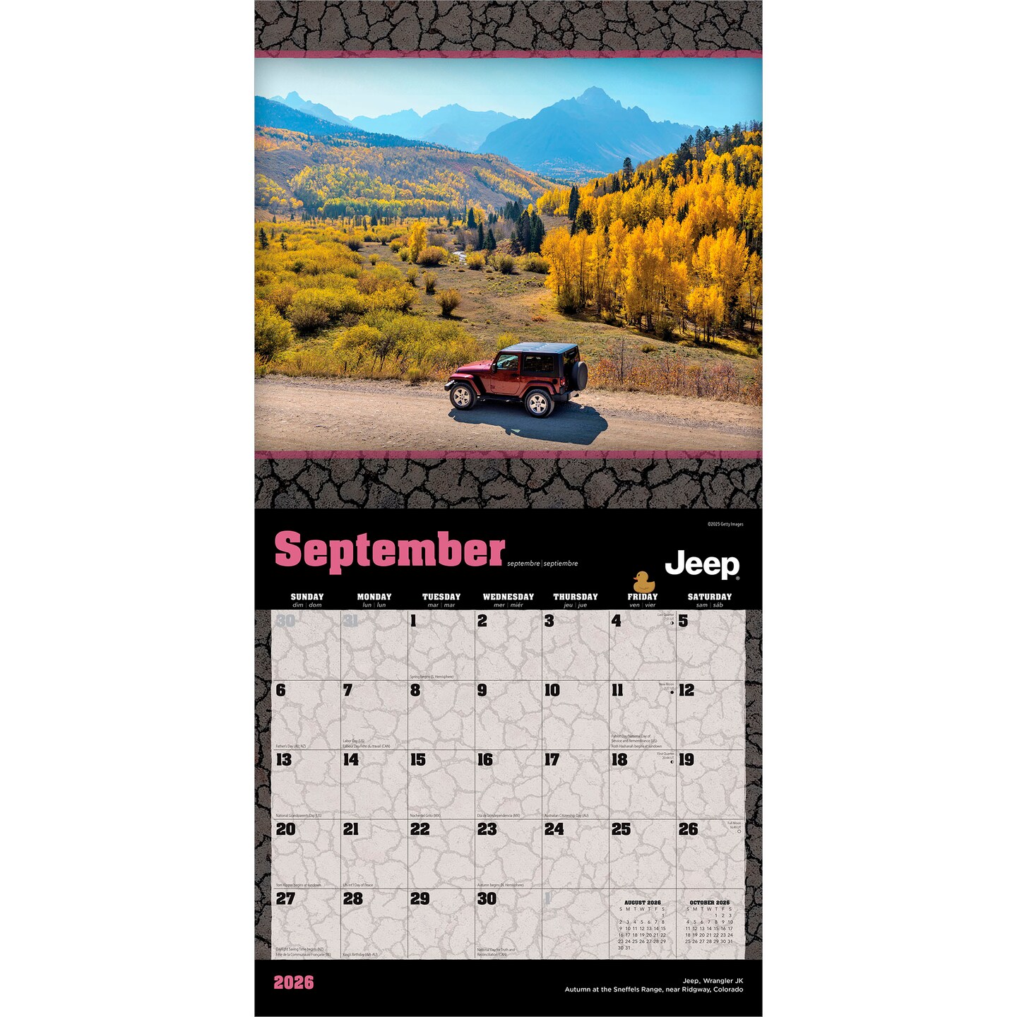 Jeep OFFICIAL | 2026 12 x 24 Inch (Hanging) Monthly Square Wall Calendar | Plastic-Free