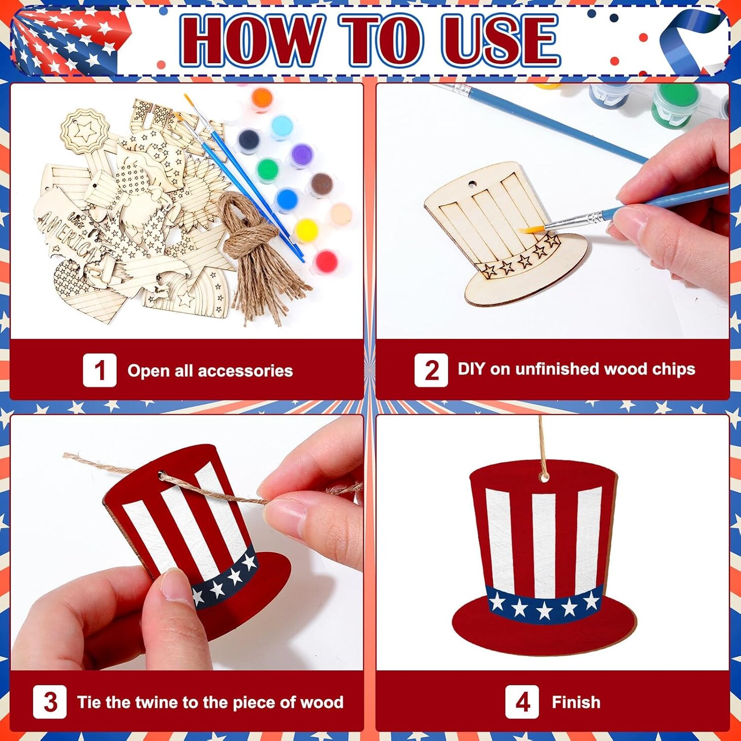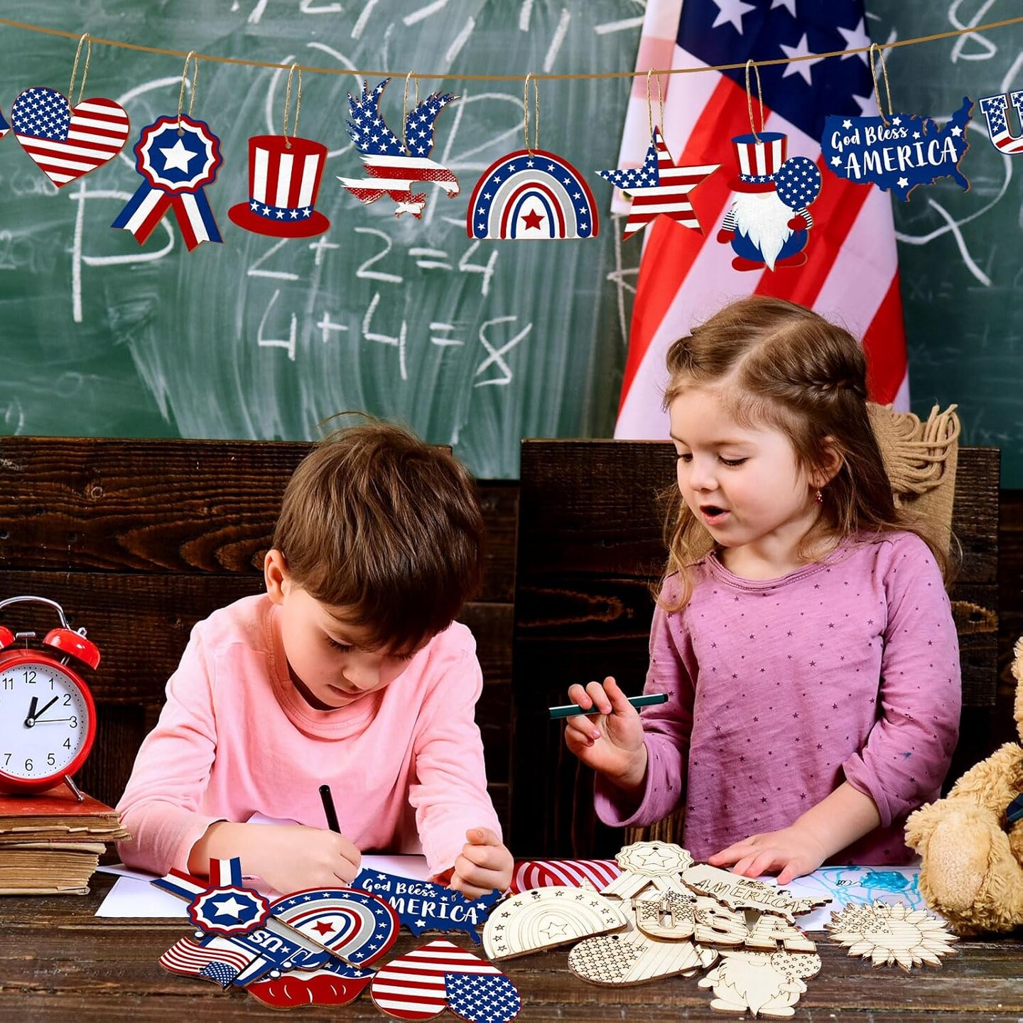 JellyArch 36 Pcs Patriotic Wood Cutouts