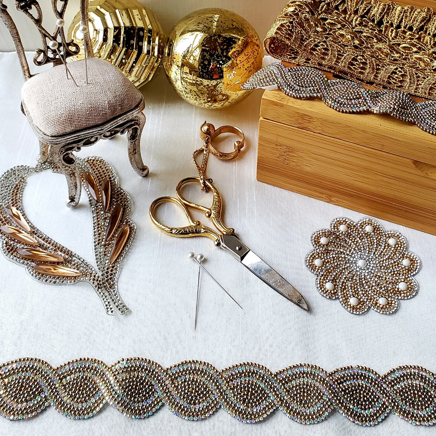 Jenna Iron-on Glass Plume Motif Applique/Patch Pair