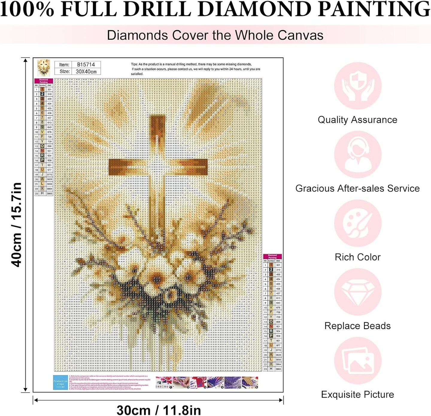 Jesus Christ Cross Diamond Painting Kit for Adults – 5D Full Drill DIY Religious Diamond Art, Beginner-Friendly Gem Craft for Home Wall Decor, 12×16 Inch