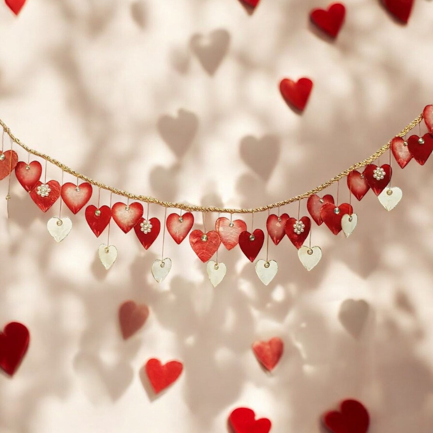 Jeweled Hearts Capiz Garland - Valentine's Day and Wedding Decor - Final sale / Non-returnable and Non-refundable