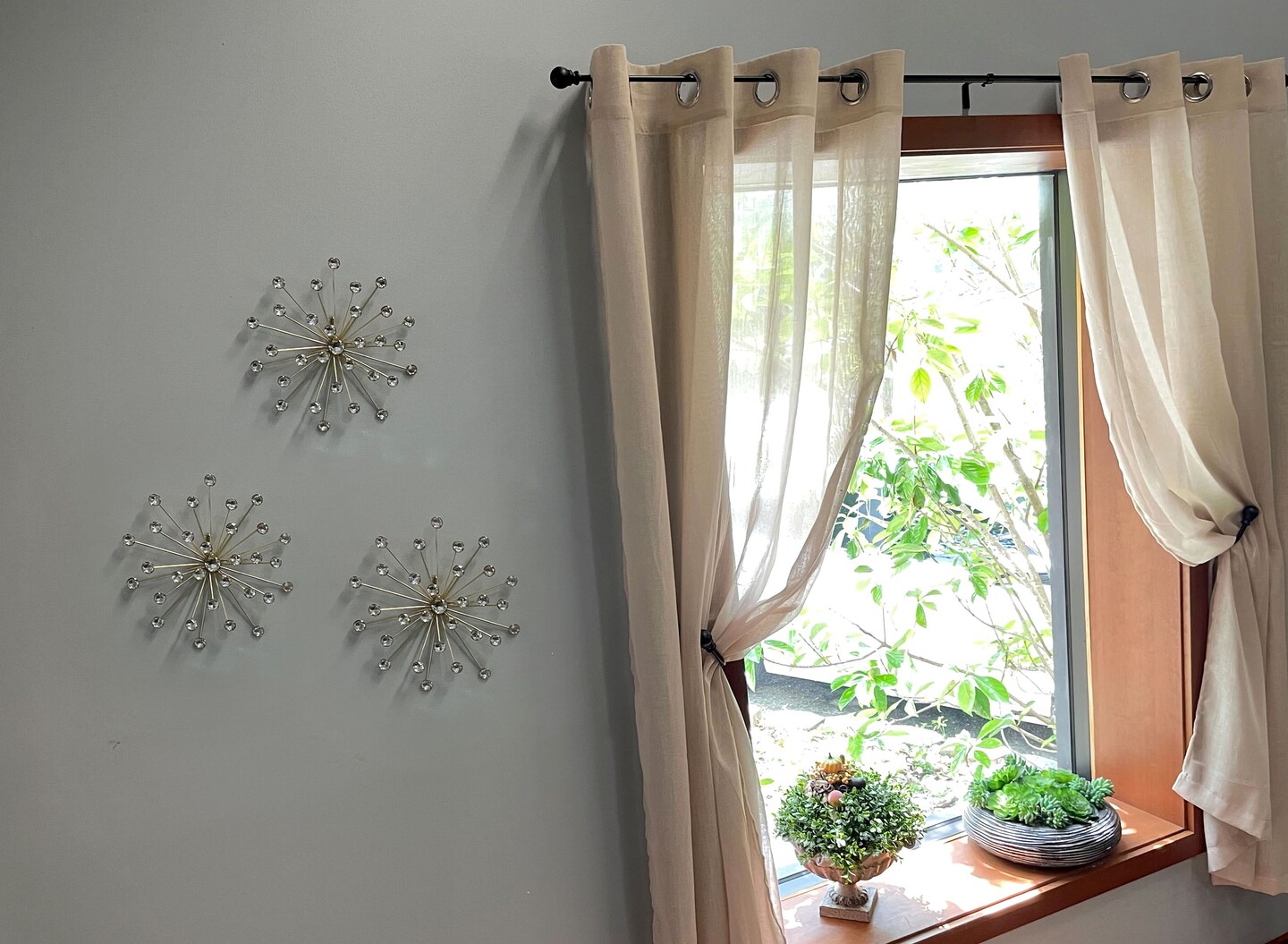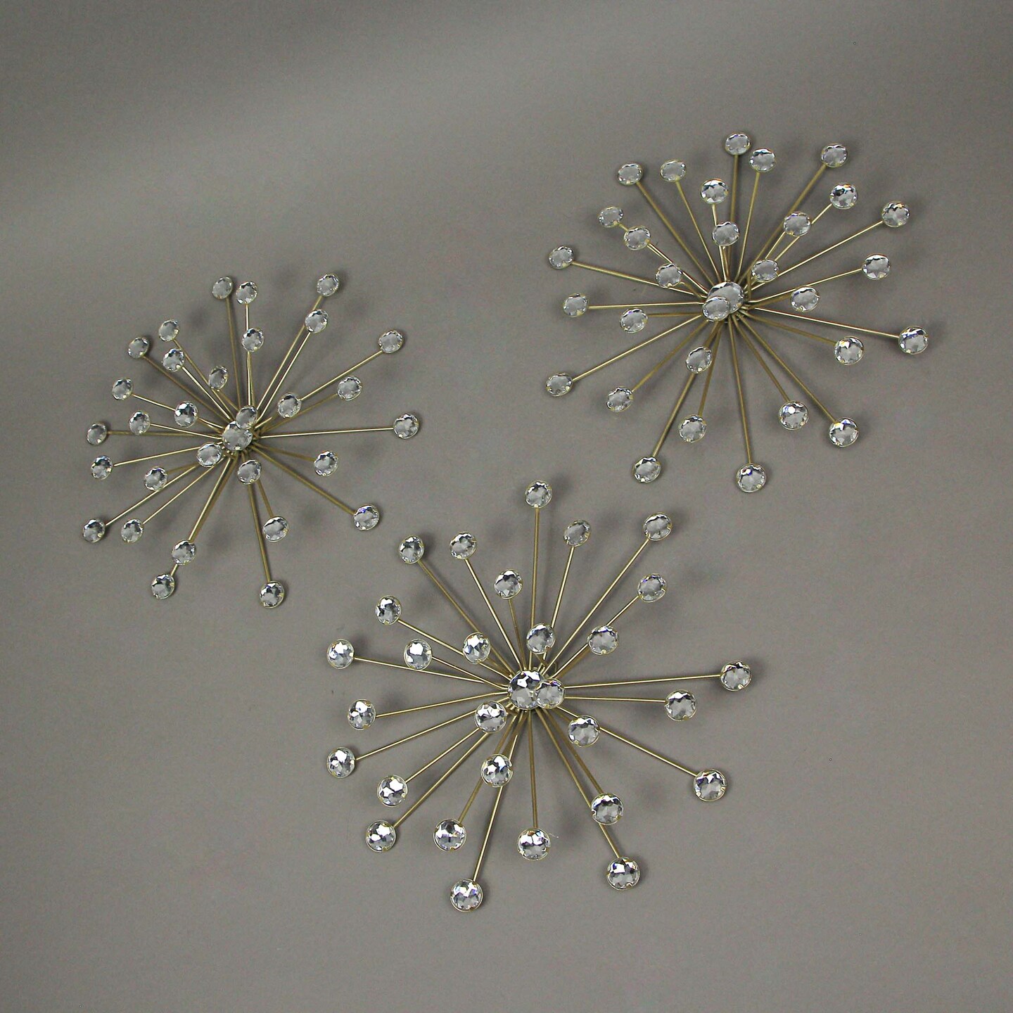 Jeweled Metal Bursting Star Wall Mounted Hanging Sculpture Set of 3 Burst