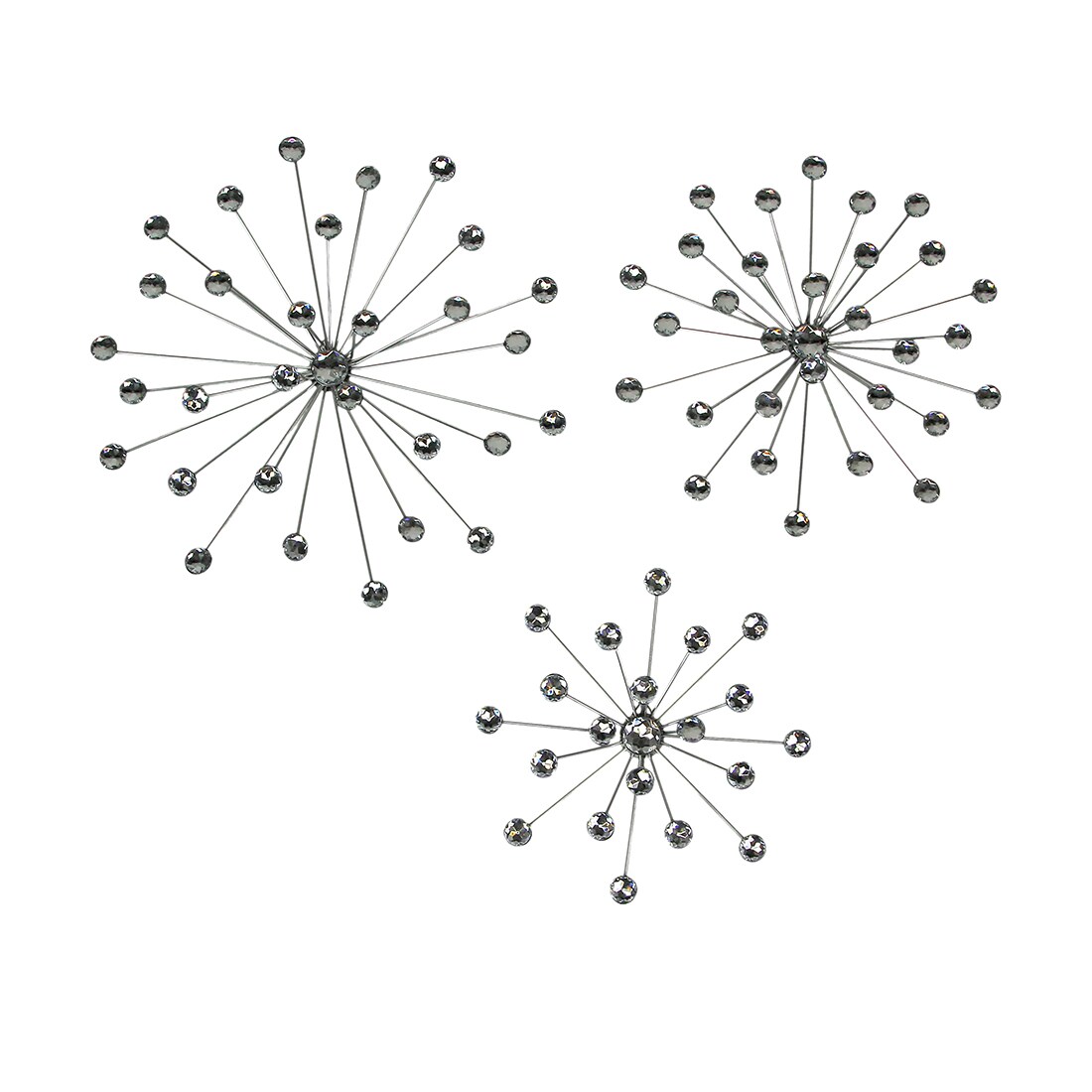 Jeweled Metal Sunburst Wall Mounted Hanging Sculpture Set of 3