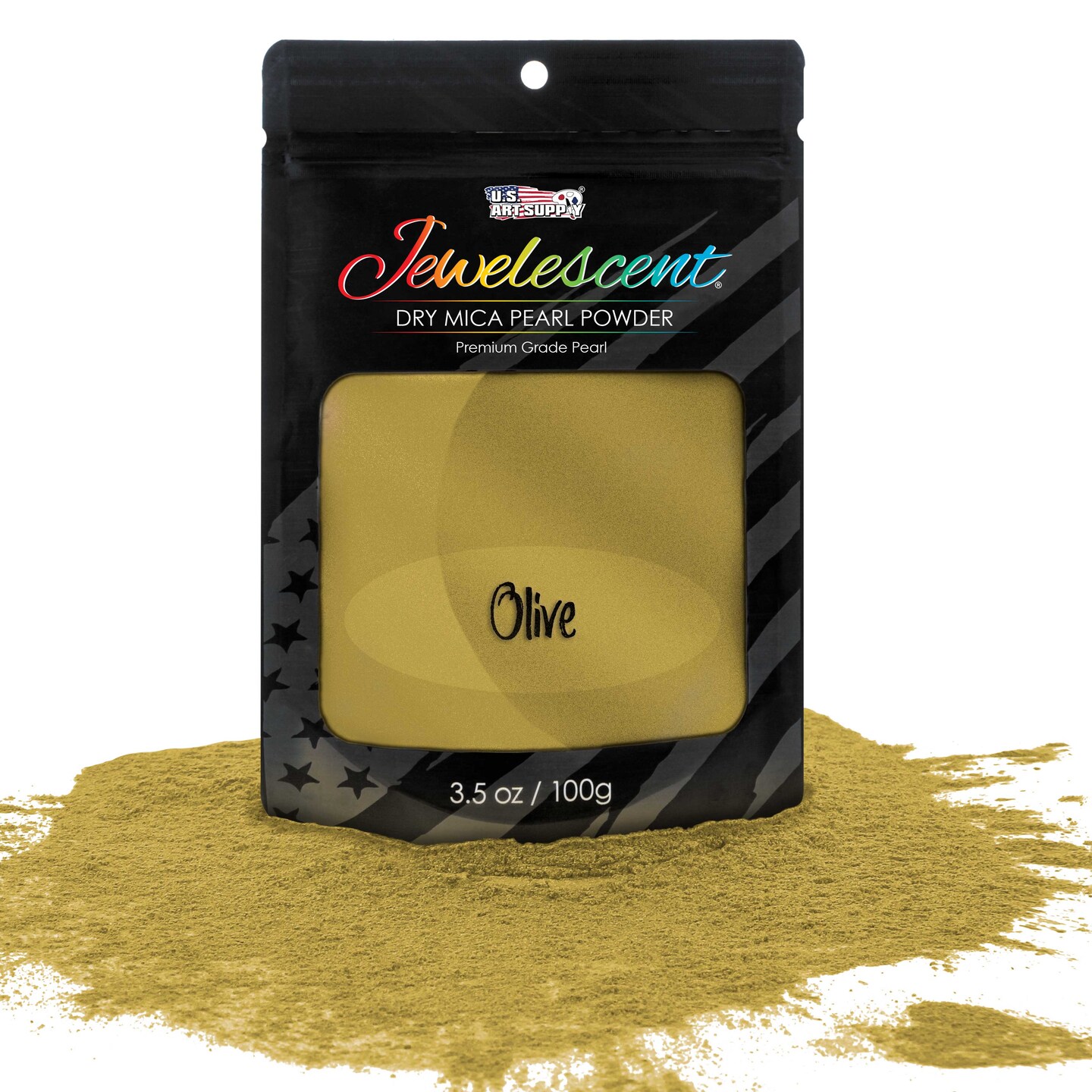 Jewelescent Mica Pearl Pigment Powder, Olive Gold 3.5 oz (100g) Pouch - Cosmetic Grade, Epoxy Resin Color Pigment, Mica Powder for Resin, Soap, Slime, Candle Dye, Art