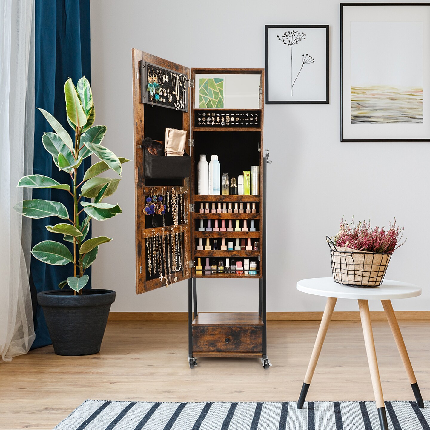 Jewelry Cabinet Floor Type Lockable Jewelry Storage Box with High Full-Length Mirror Bottom Drawer Shelves