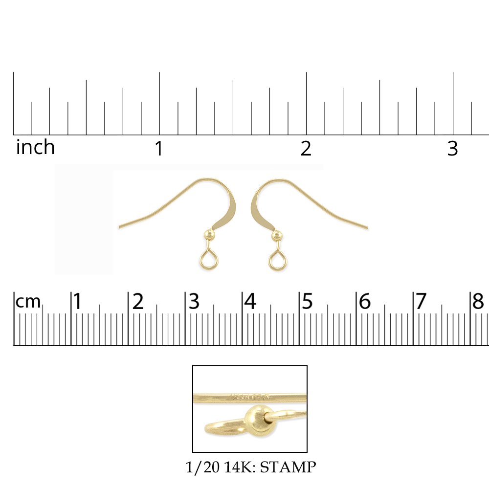 JewelrySupply Gold Filled Flat Fish Hook Earring Wires with2mm Bead (1 Pair of Gold Filled Earrings)