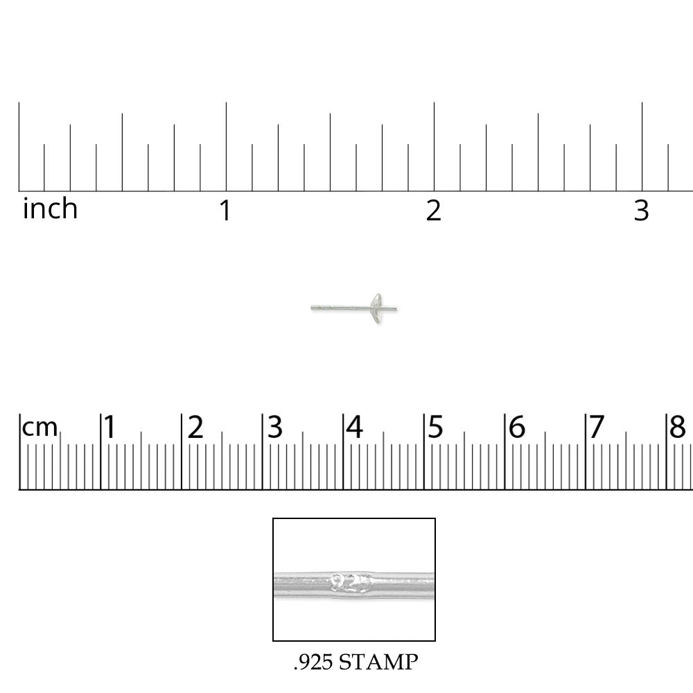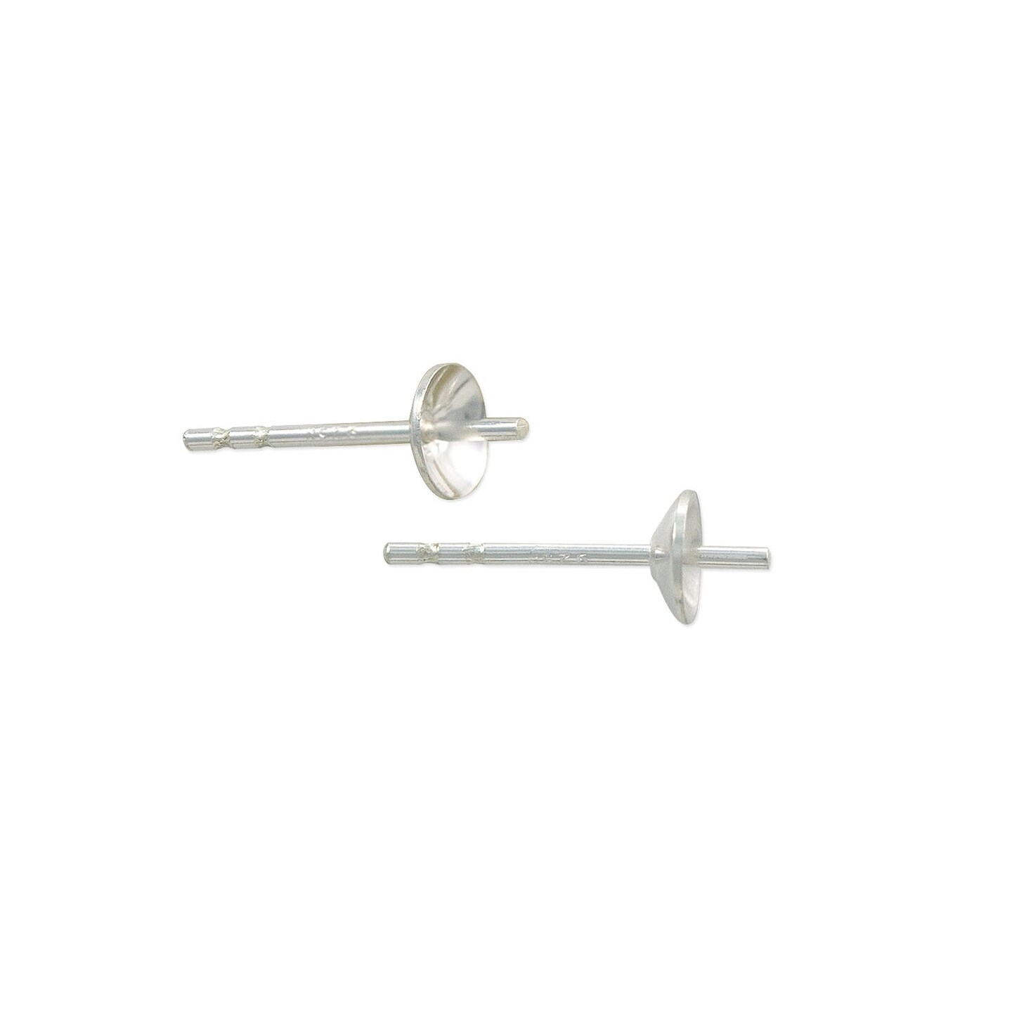 JewelrySupply Sterling Silver Pearl Posts with 4mm Cup (1 Pair of Sterling Silver Pearl Post Earrings)