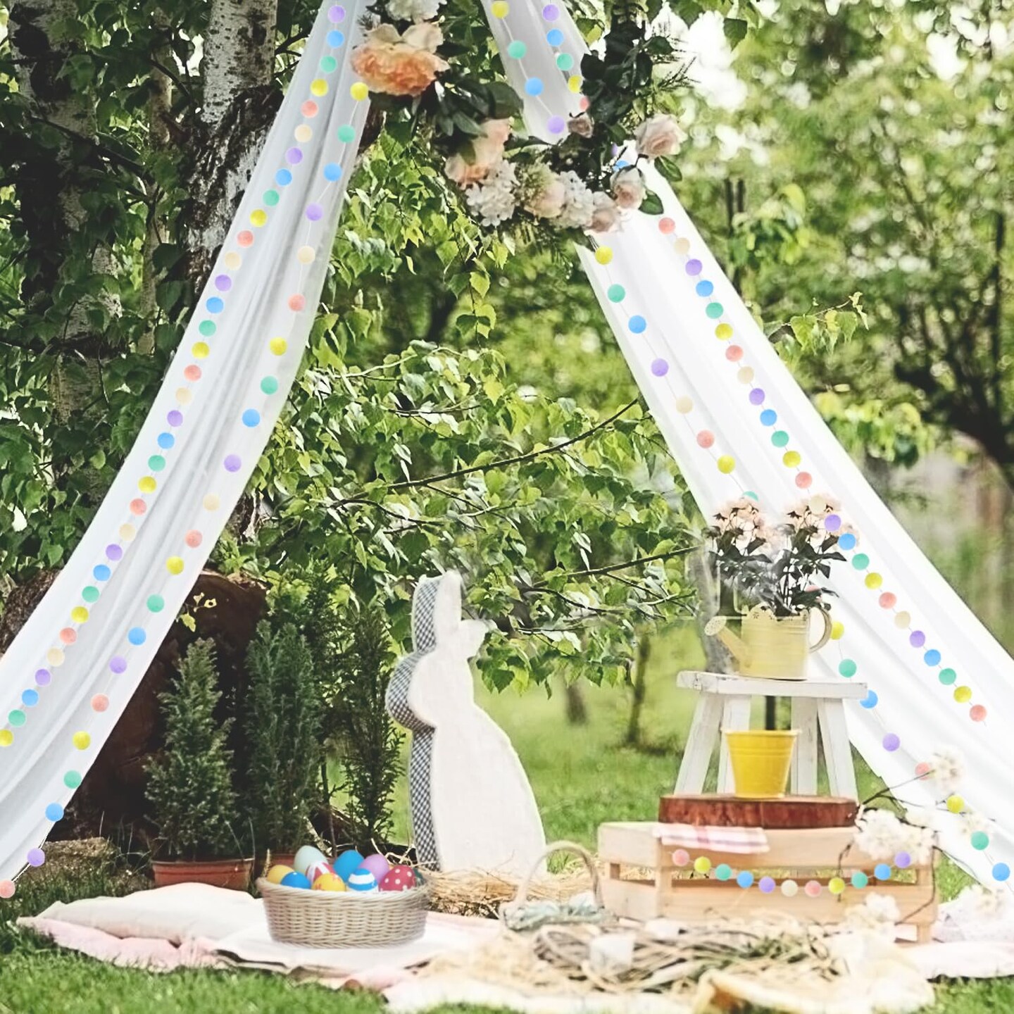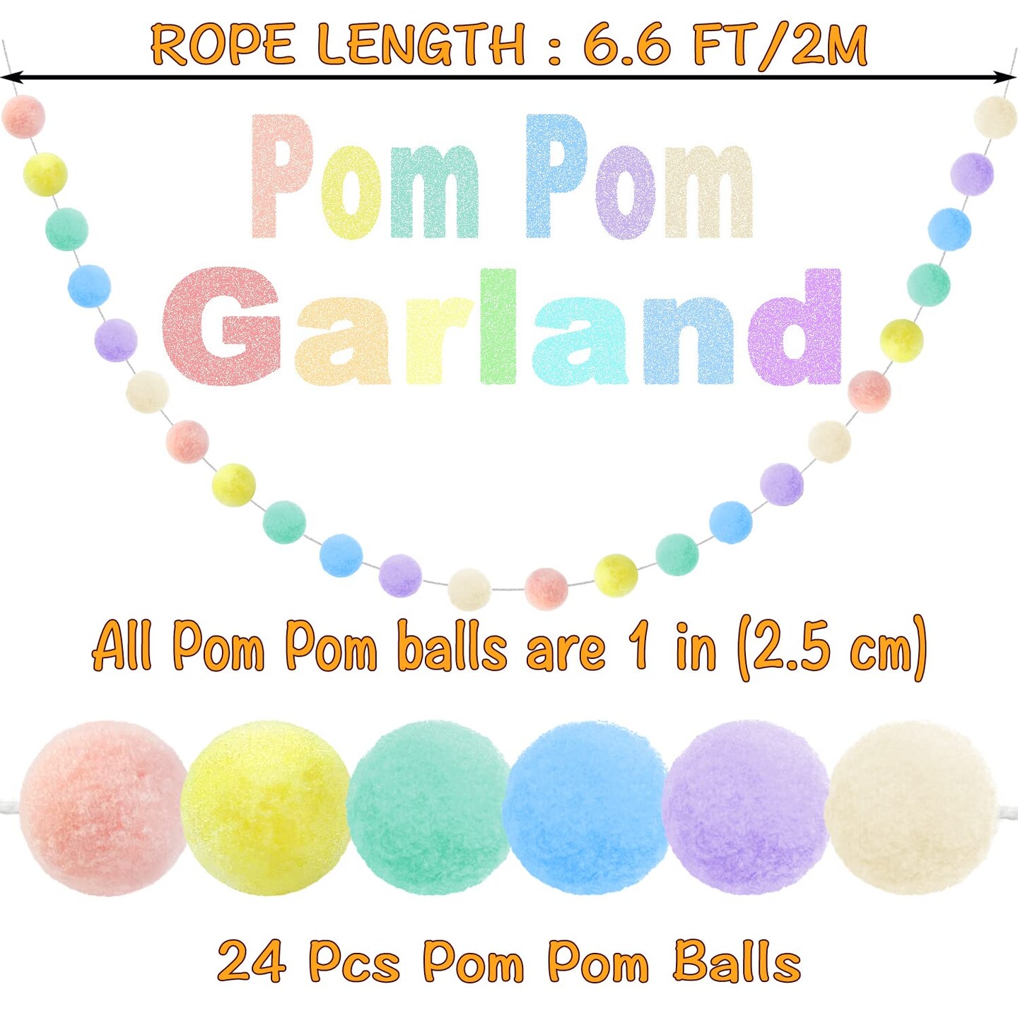 Jishi 3pk Pastel Pom Pom Garland Hanging Easter Decorations Indoor Home Decor for Living Room Wall Classroom Christmas Tree, Cute Rainbow Colorful Felt Ball Garland Baby Shower Birthday Party Supplies
