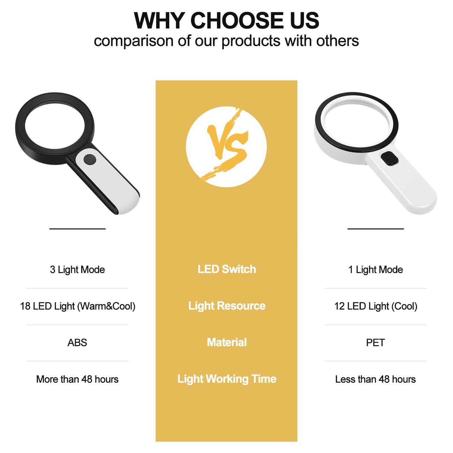 JMH Magnifying Glass with Light, 30X Handheld Large 18LED Cold and Warm Light with 3 Modes, Illuminated Magnifier for Seniors Reading, Inspection, Coins, Jewelry, Exploring