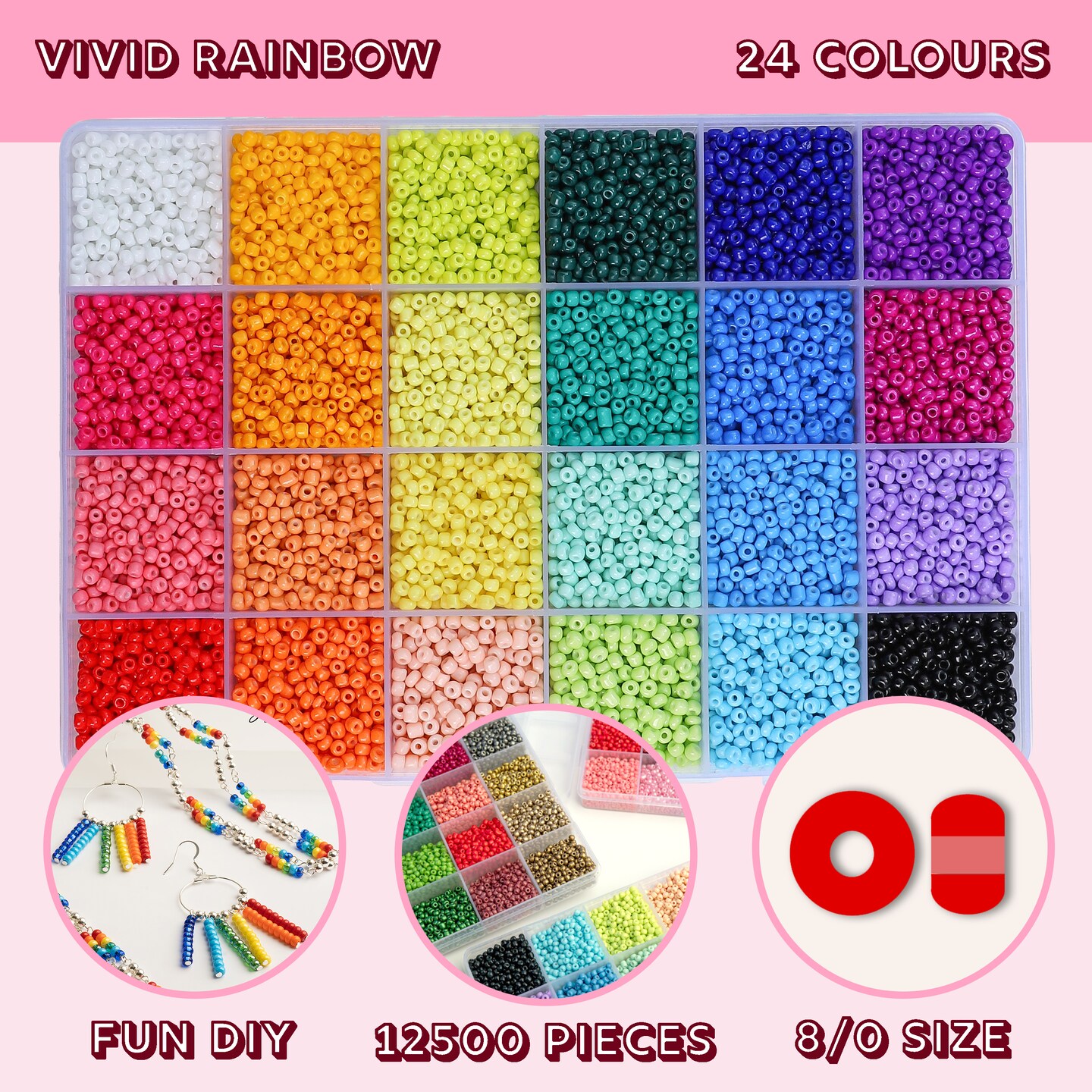 John Bead 12500pcs Assorted 24 Colors Glass Seed Beads 8/0 Jewelry Making Bead Box