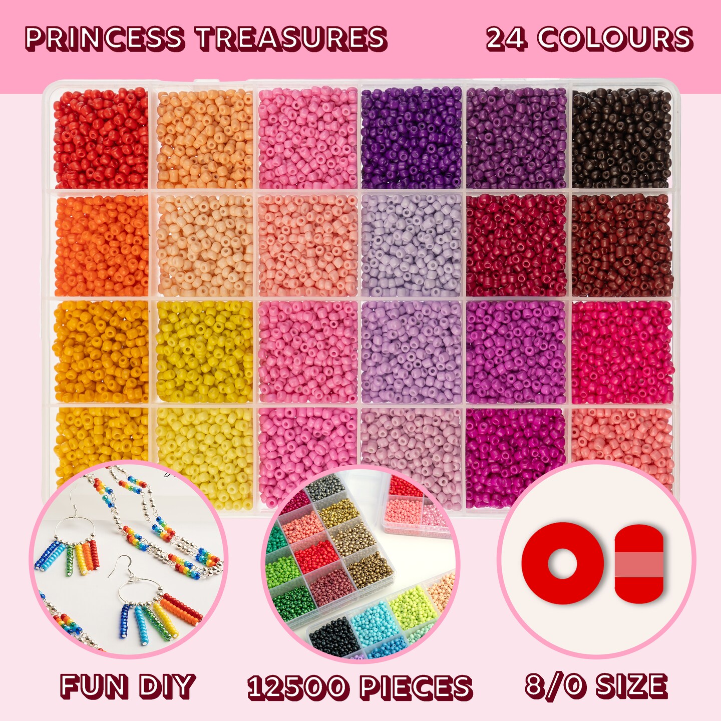 John Bead 12500pcs Assorted 24 Colors Glass Seed Beads 8/0 Jewelry Making Bead Box