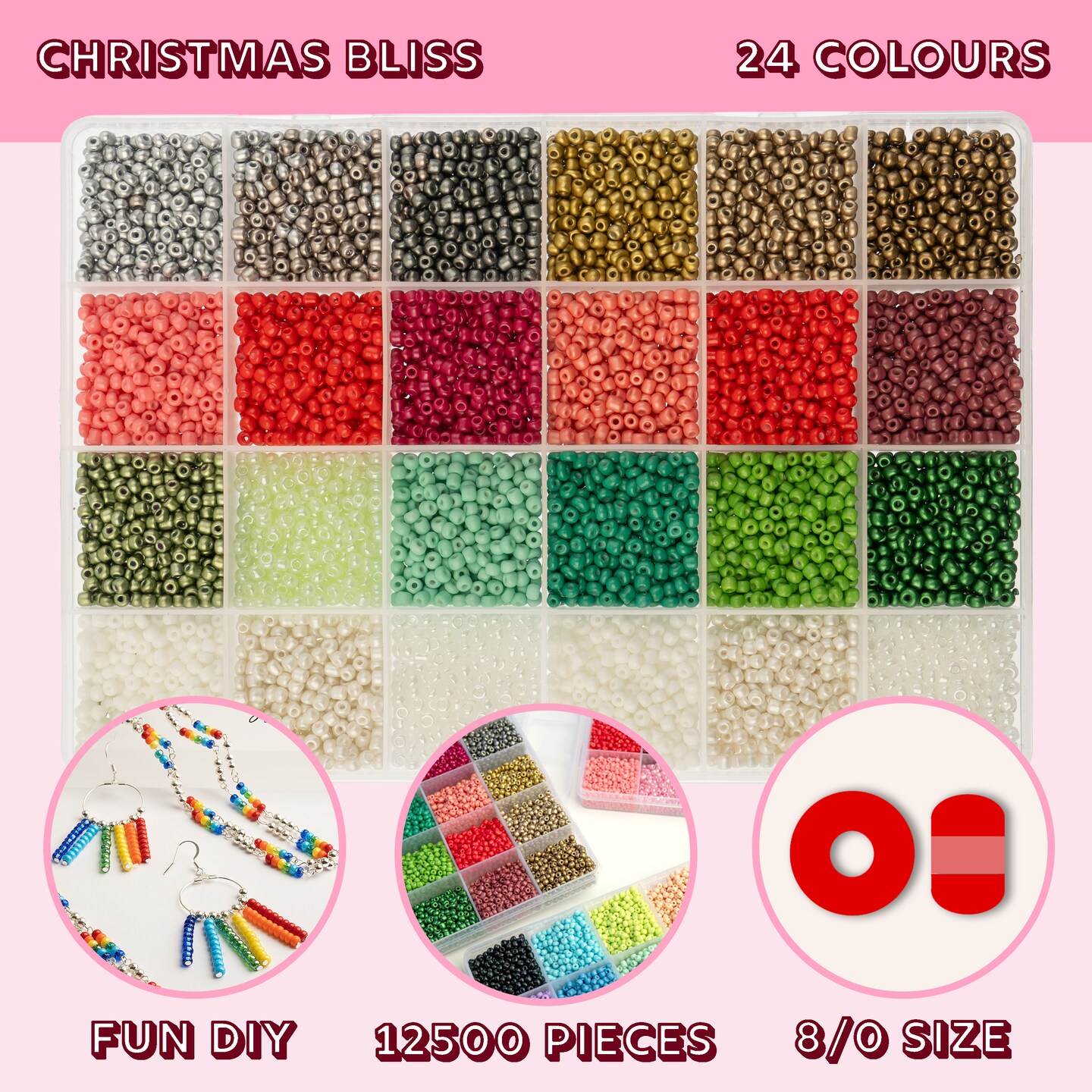 John Bead 12500pcs Assorted 24 Colors Glass Seed Beads 8/0 Jewelry Making Bead Box