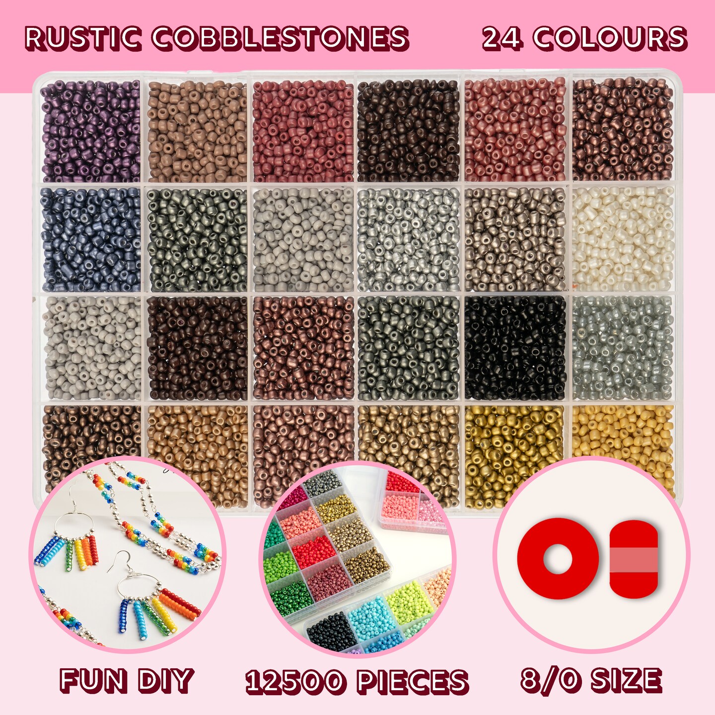 John Bead 12500pcs Assorted 24 Colors Glass Seed Beads 8/0 Jewelry Making Bead Box