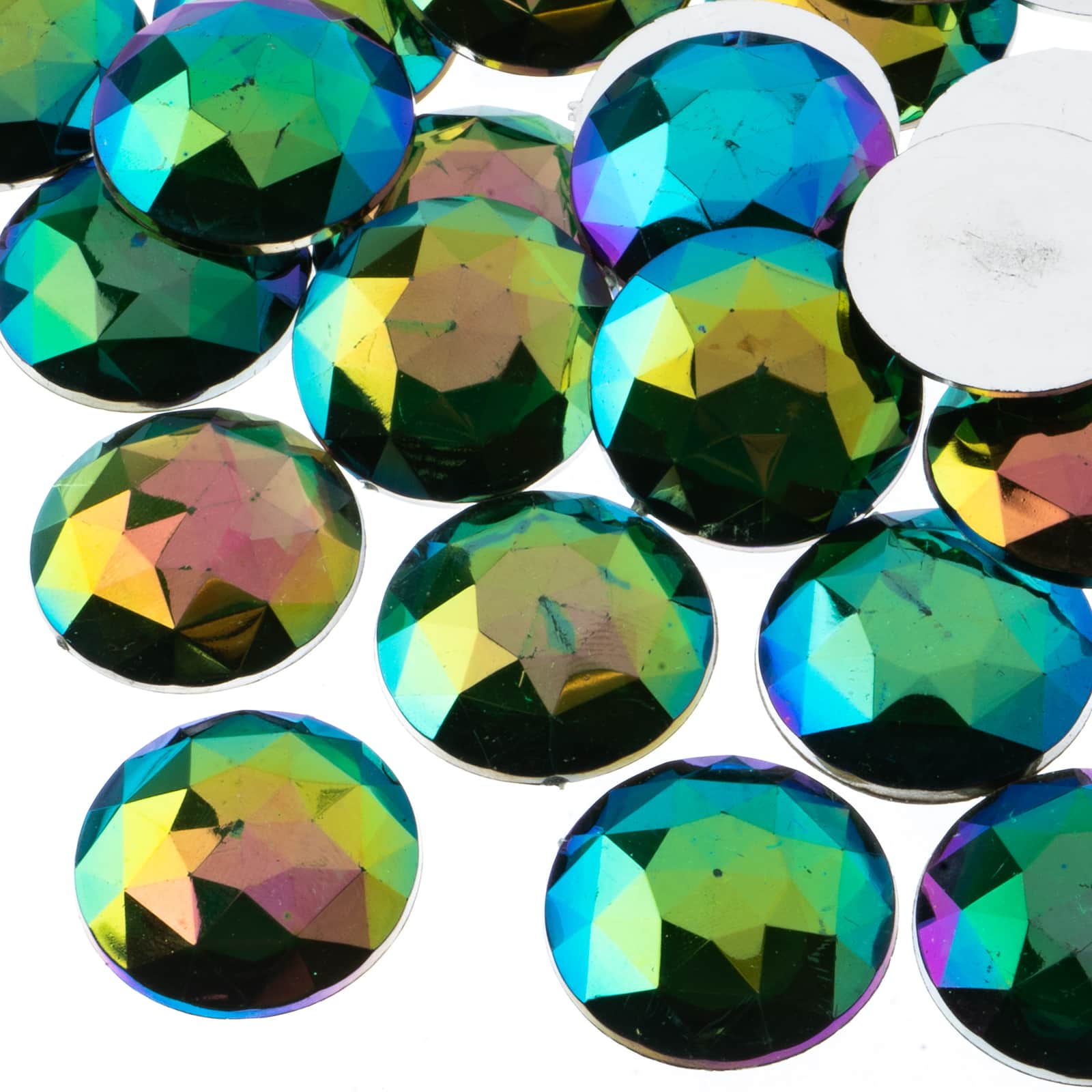 John Bead 25mm AB Acrylic Round Flat Back Rhinestones, 100ct.