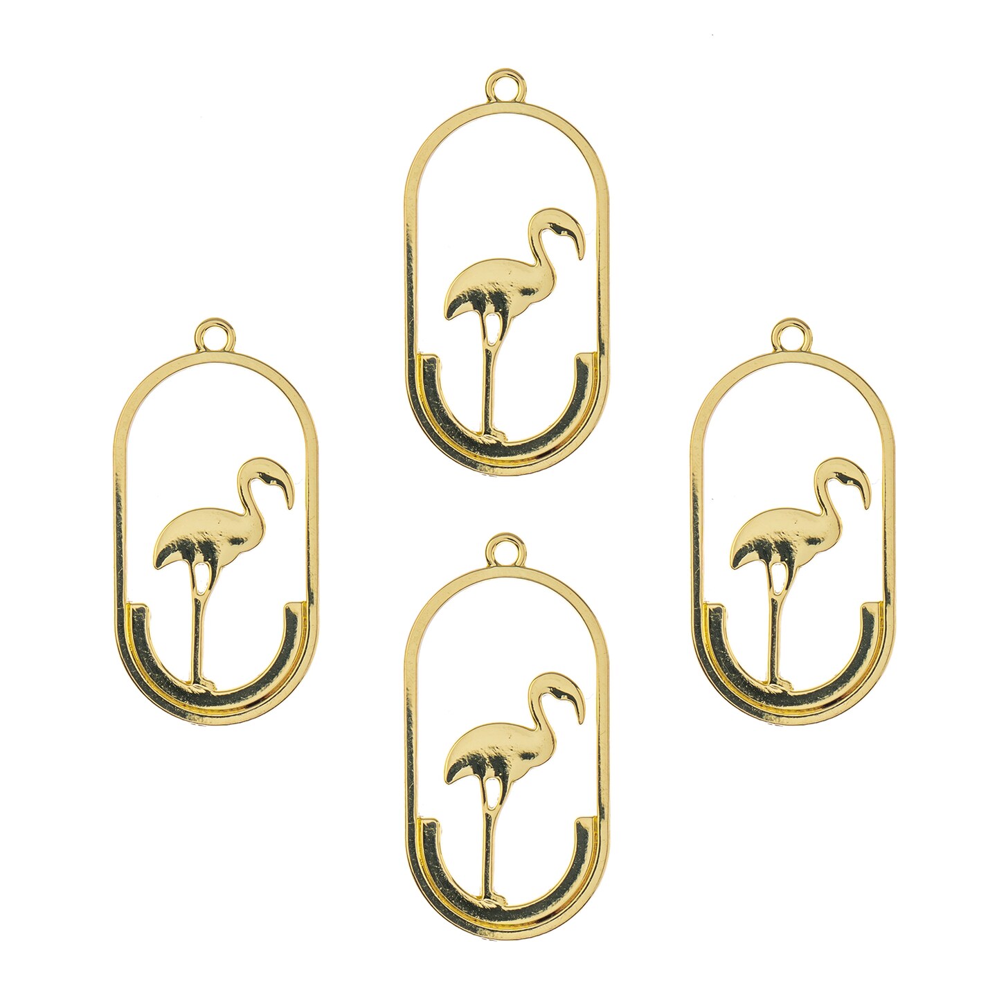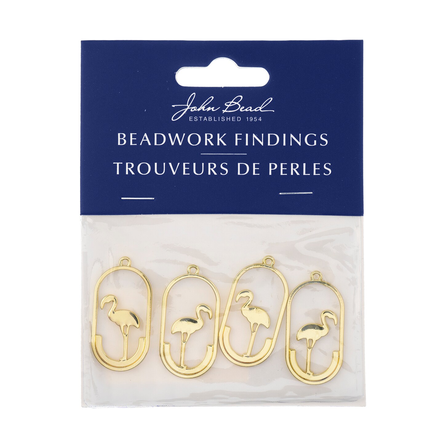 John Bead 30mm Oval Flamingo Beadwork Pendants