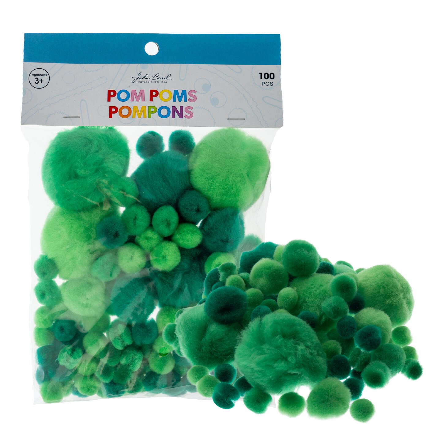 John Bead Assorted Sizes and Colors Fluffy Pom Poms, 100ct.