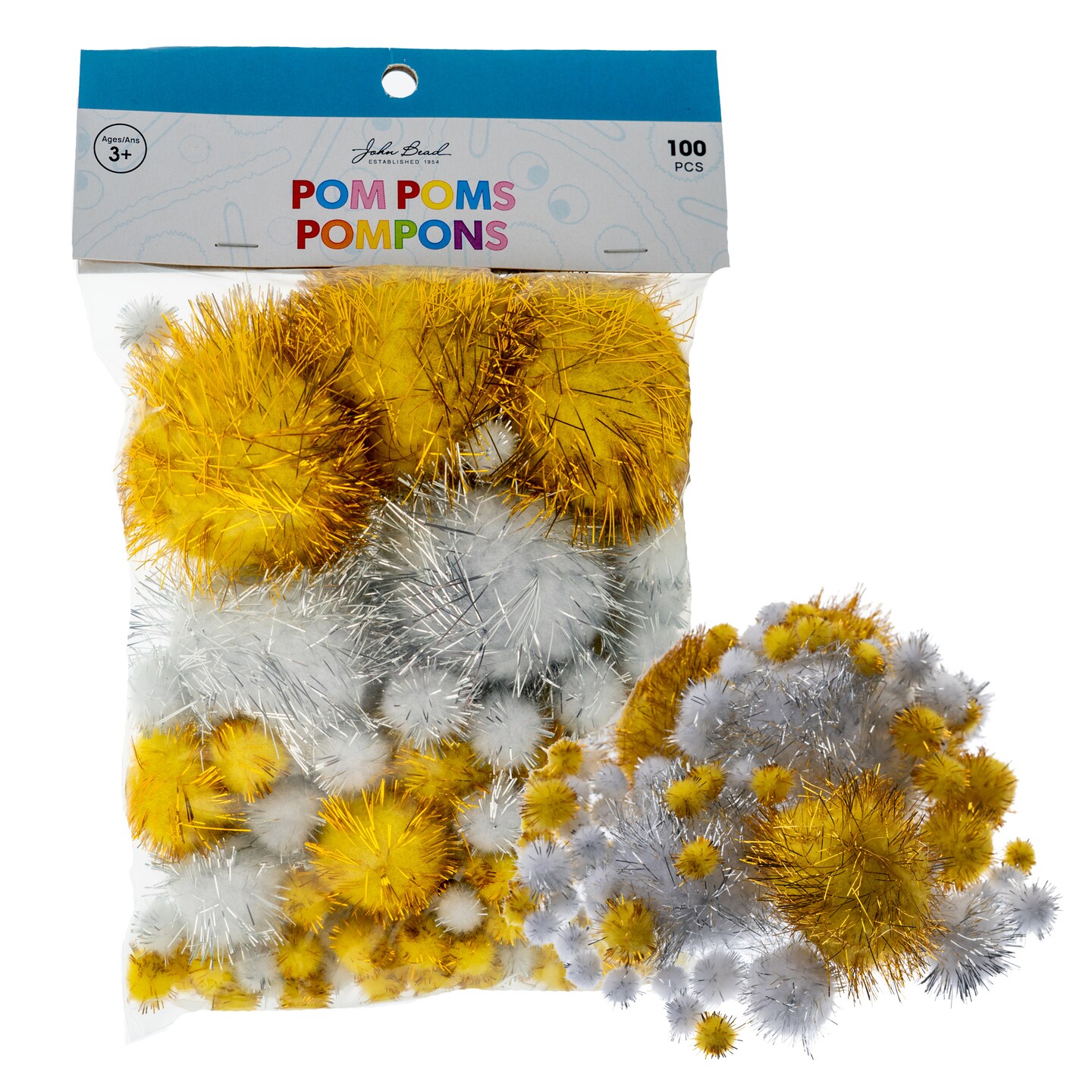 John Bead Assorted Sizes and Colors Fluffy Pom Poms, 100ct.