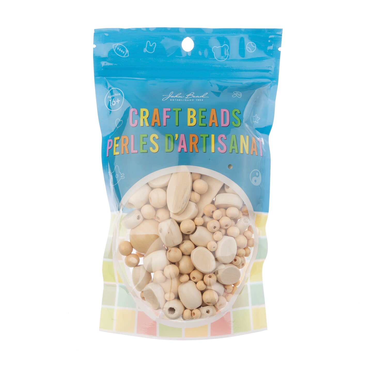 John Bead Craft Wood Beads with Elastic Nylon Cord, 90g