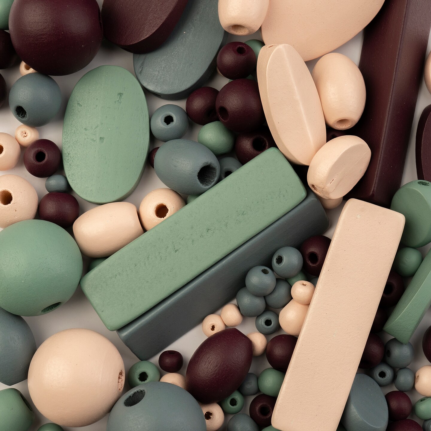 John Bead Craft Wood Beads with Elastic Nylon Cord, 90g