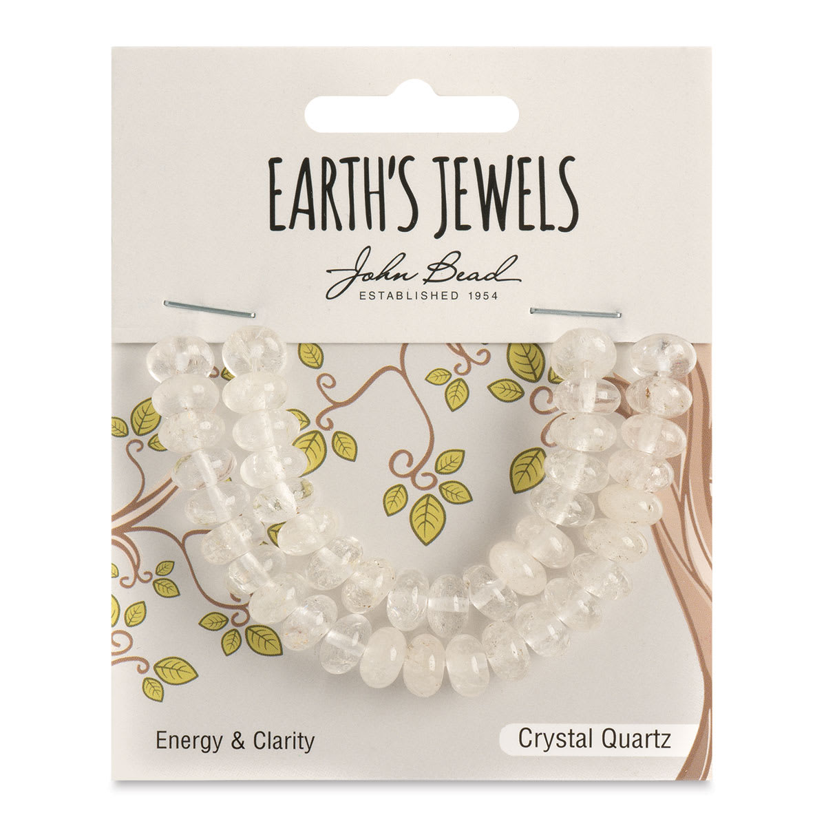 John Bead Earth's Jewels Quartz Beads - Crystal Quartz, Donut Rondelle, 5 mm x 8 mm, 41 beads